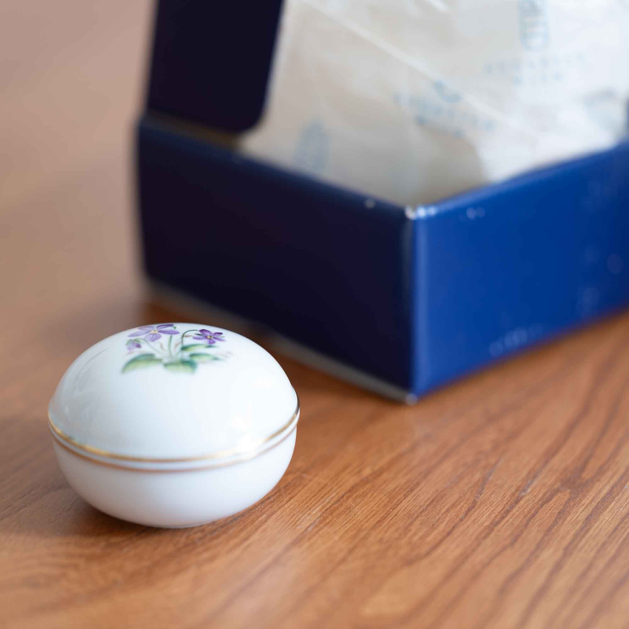 オーストリアの磁器ブランド「アウガルテン」の手描きの花柄が魅力的なとても小さな小物入れです。