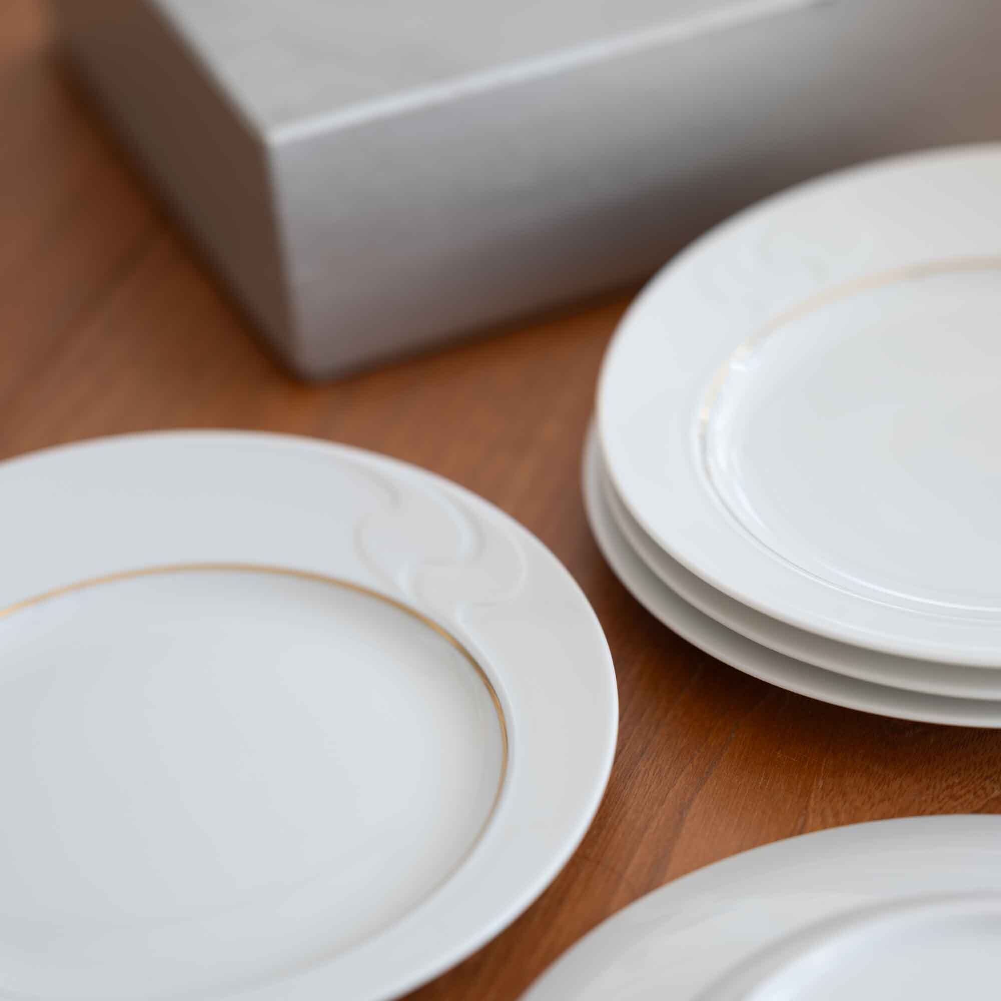 ドイツ ROSENTHAL 白磁にゴールドのライン 二箇所の波模様 ケーキ皿 径 20.5センチ 5枚セット