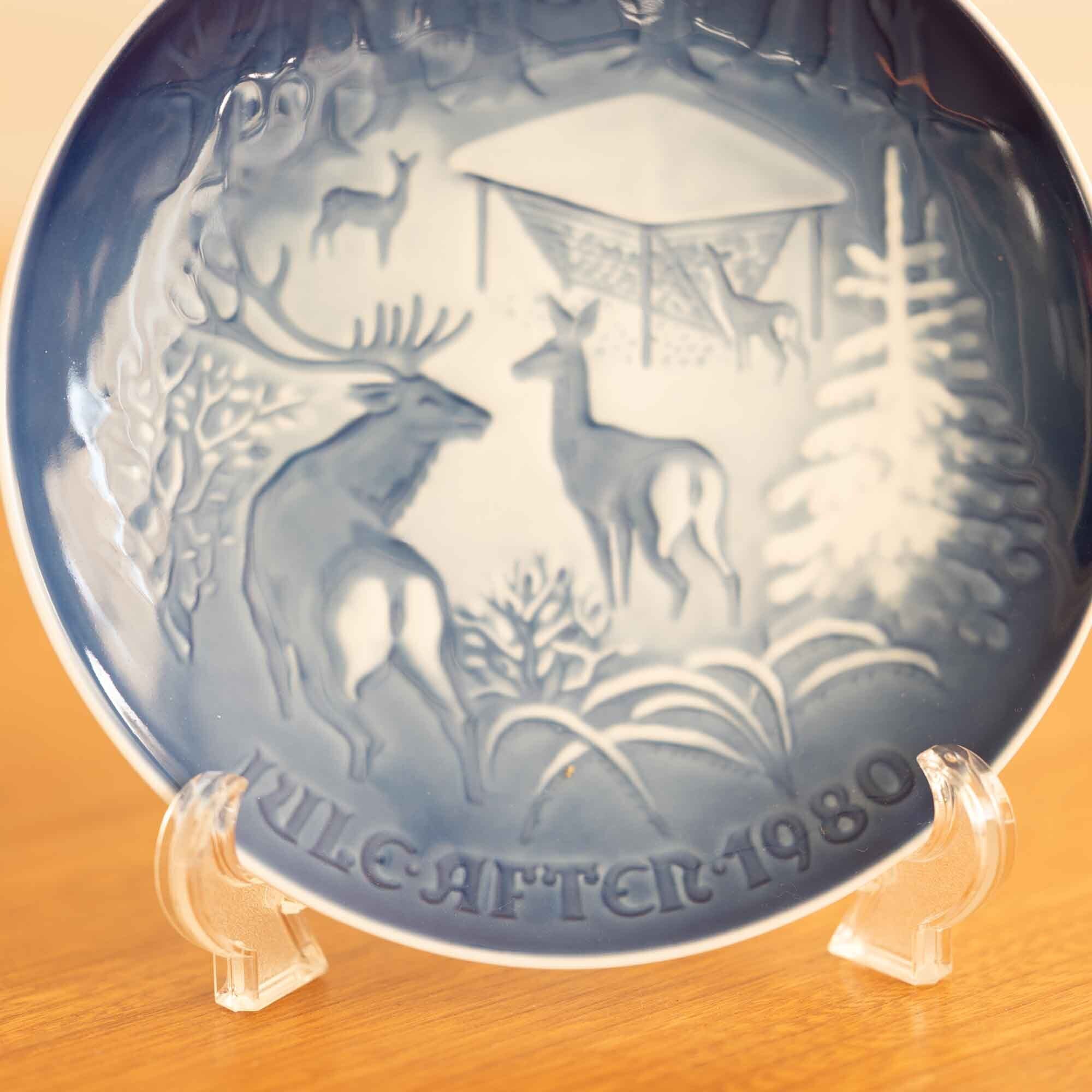 1980年のイヤープレートは、クリスマスイブの森には鹿のファミリーがいるようです。