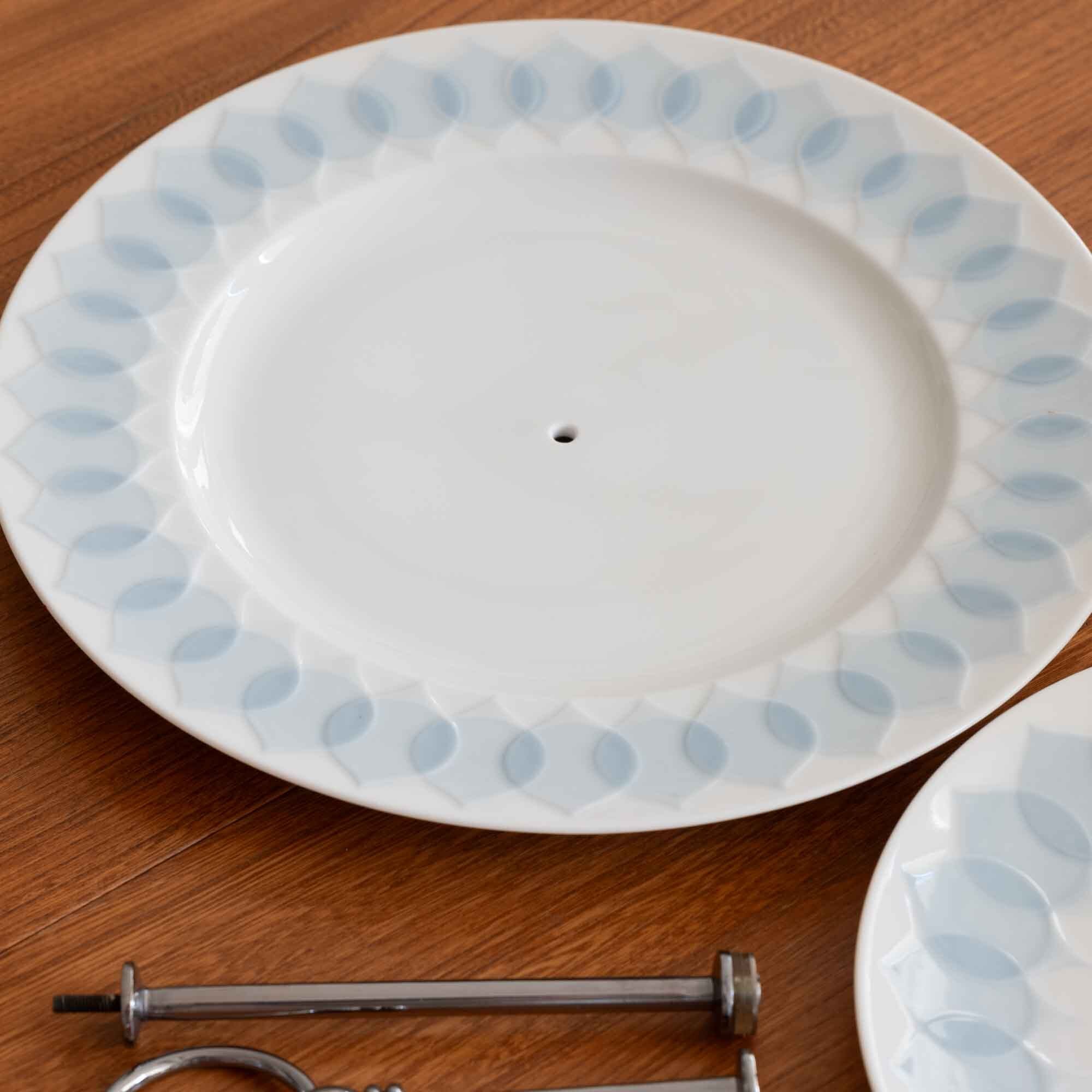 このような商品が販売されていたのではなく、5ミリ径の穴を開ければお好きなお皿でケーキスタンドを作って楽しむことができます。