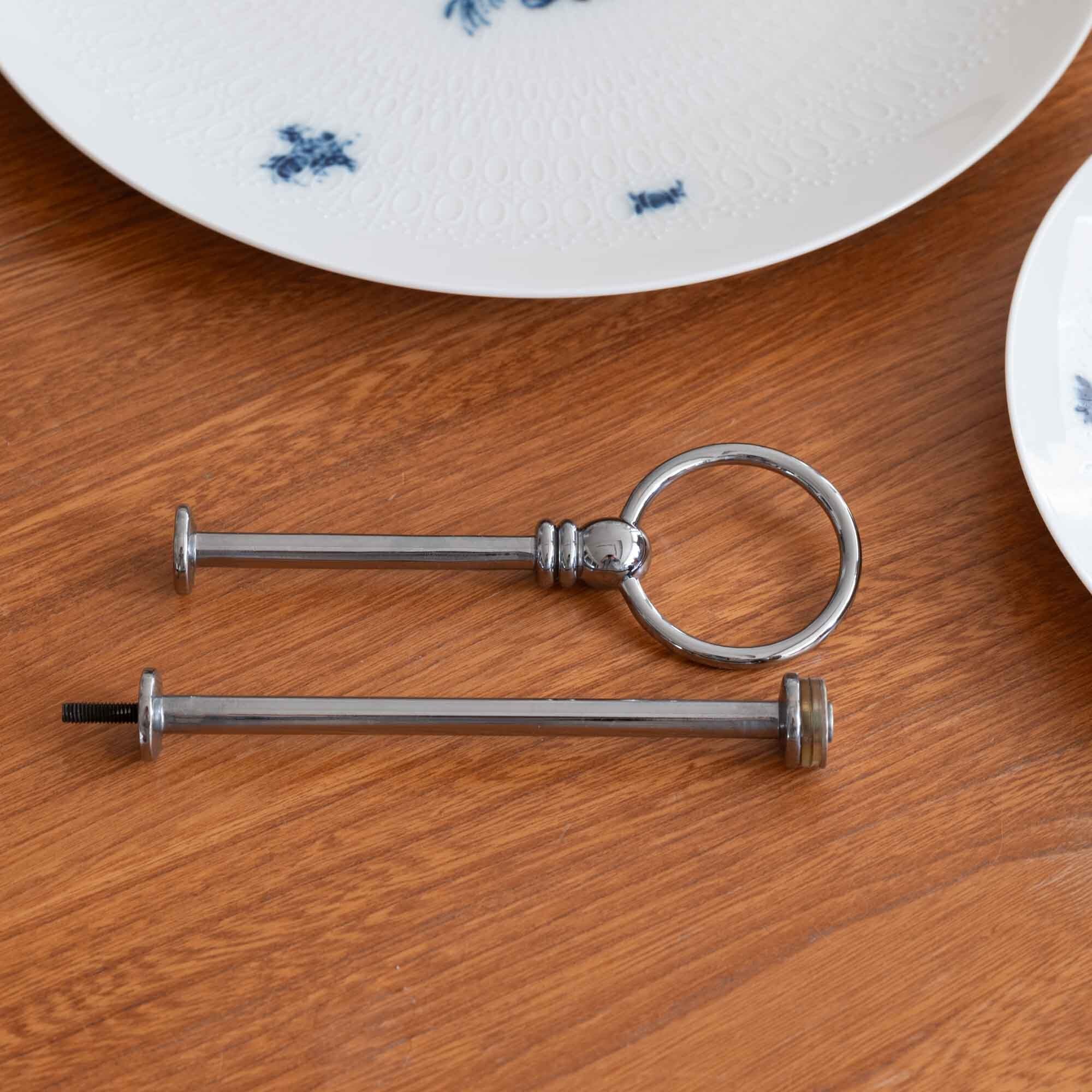 ドイツローゼンタール 社製のロマンスシリーズの「ラプソディブルー」パターンのお皿が使われたケーキスタンドです。