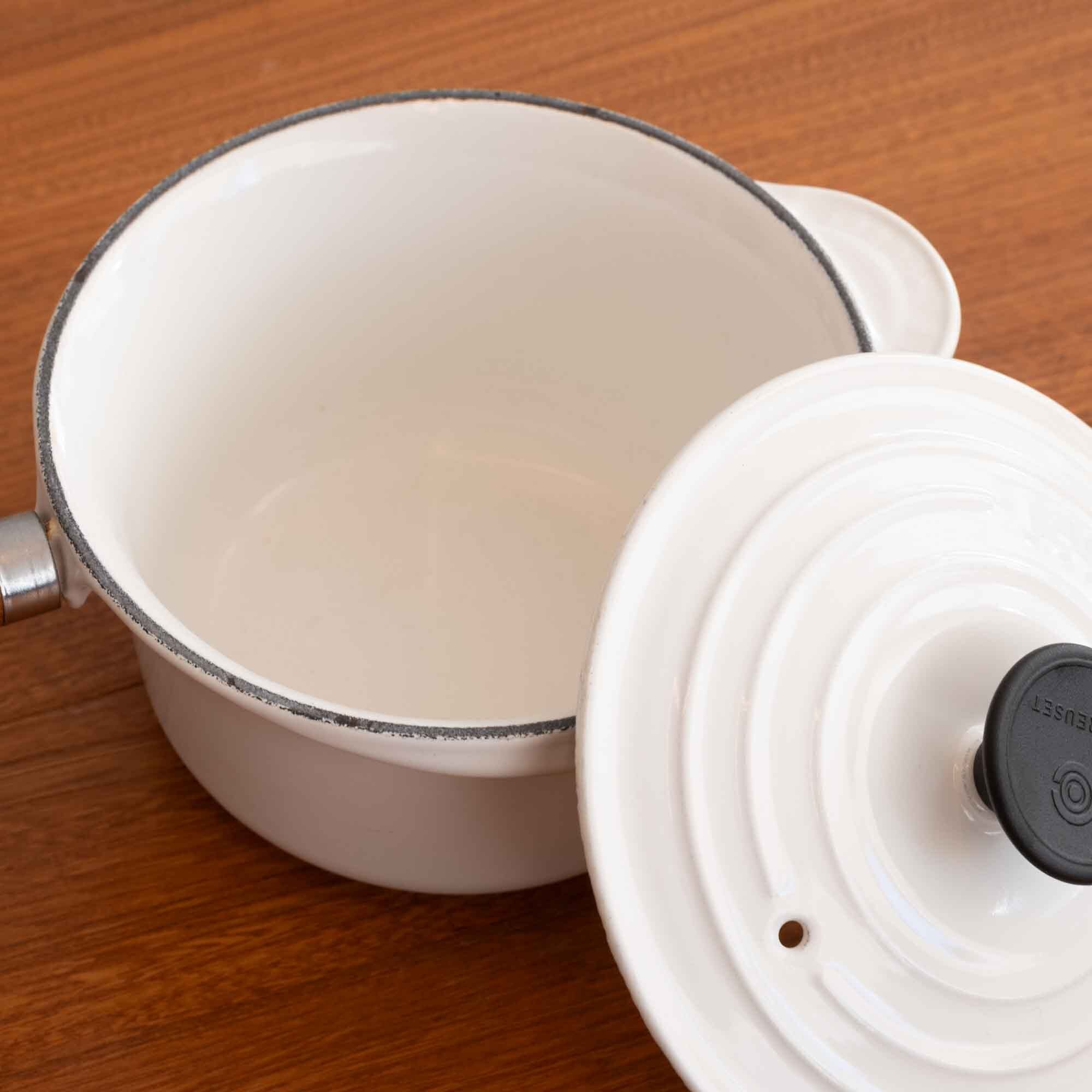 ビンテージ ル・クルーゼ LE CREUSET ホワイト サイズ16 木製ハンドル 新品・未使用品です。