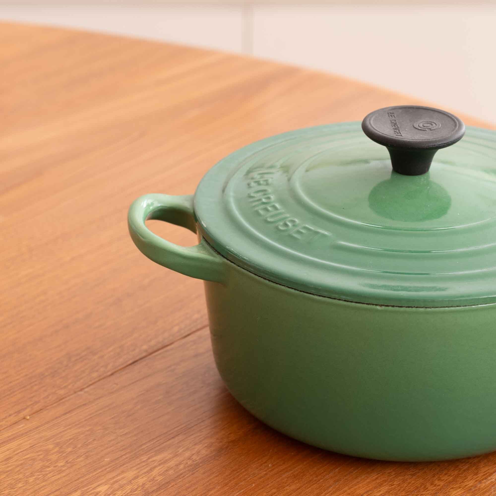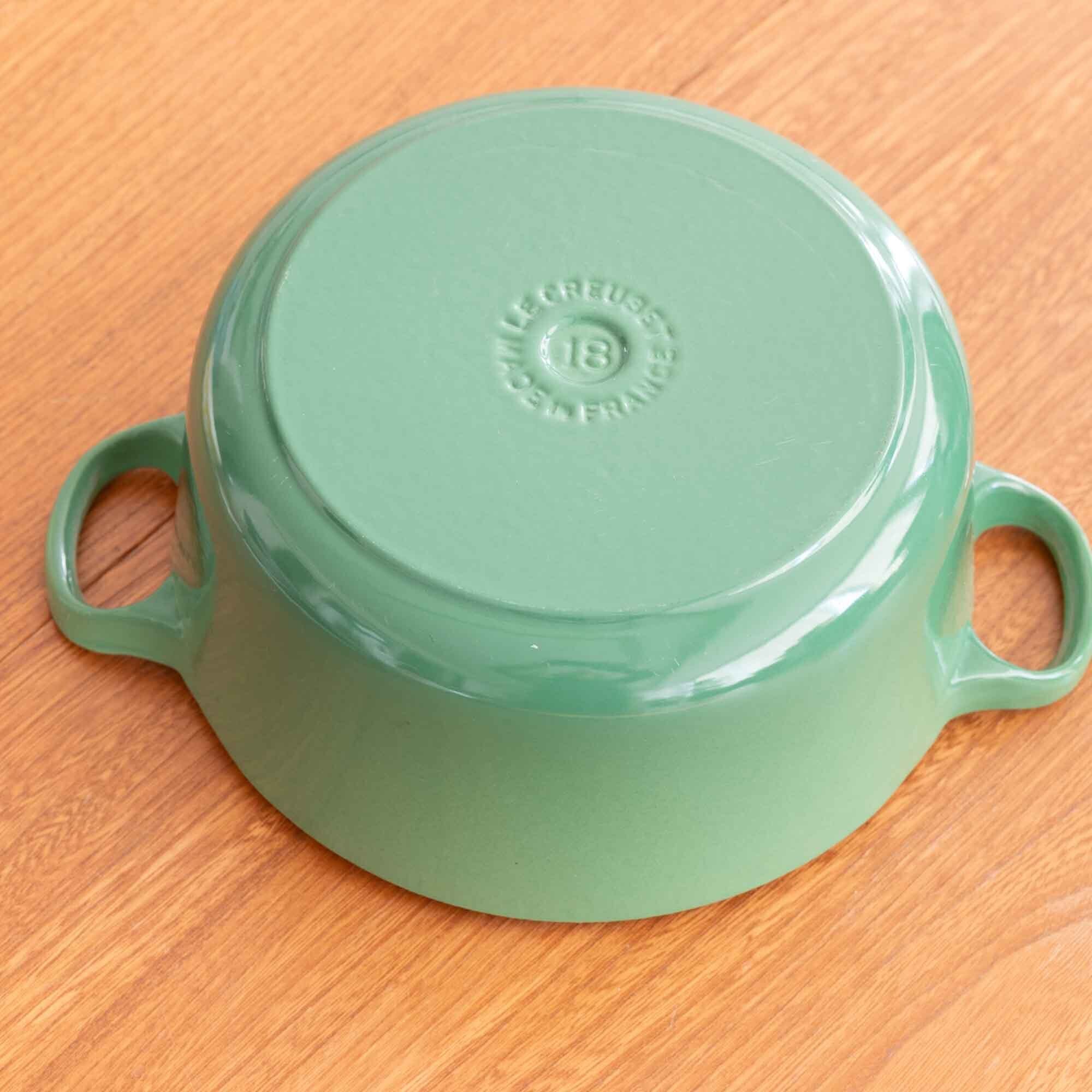 使いやすいサイズ18、ミニサイズのココットロンドです。 新品・未使用品ですので、気持ちよく使っていただけます。 ご飯なら、二合炊きくらいです。 美しいグリーンカラーはさすがですね!