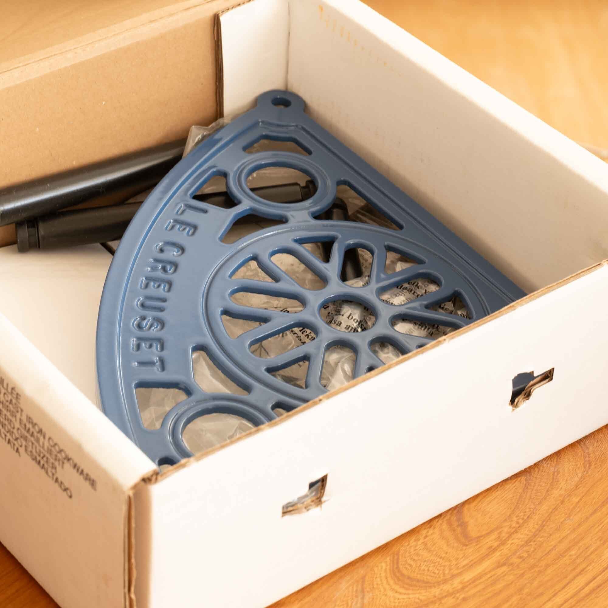 ル・クルーゼ LE CREUSET ポットスタンドは5段まで取り付け可能です。 こちらは、1段のパーツのみで、こちら単体での使用はできません。 大変頑丈な重い鋳物です、 カラーもレアなネイビーブルーです。