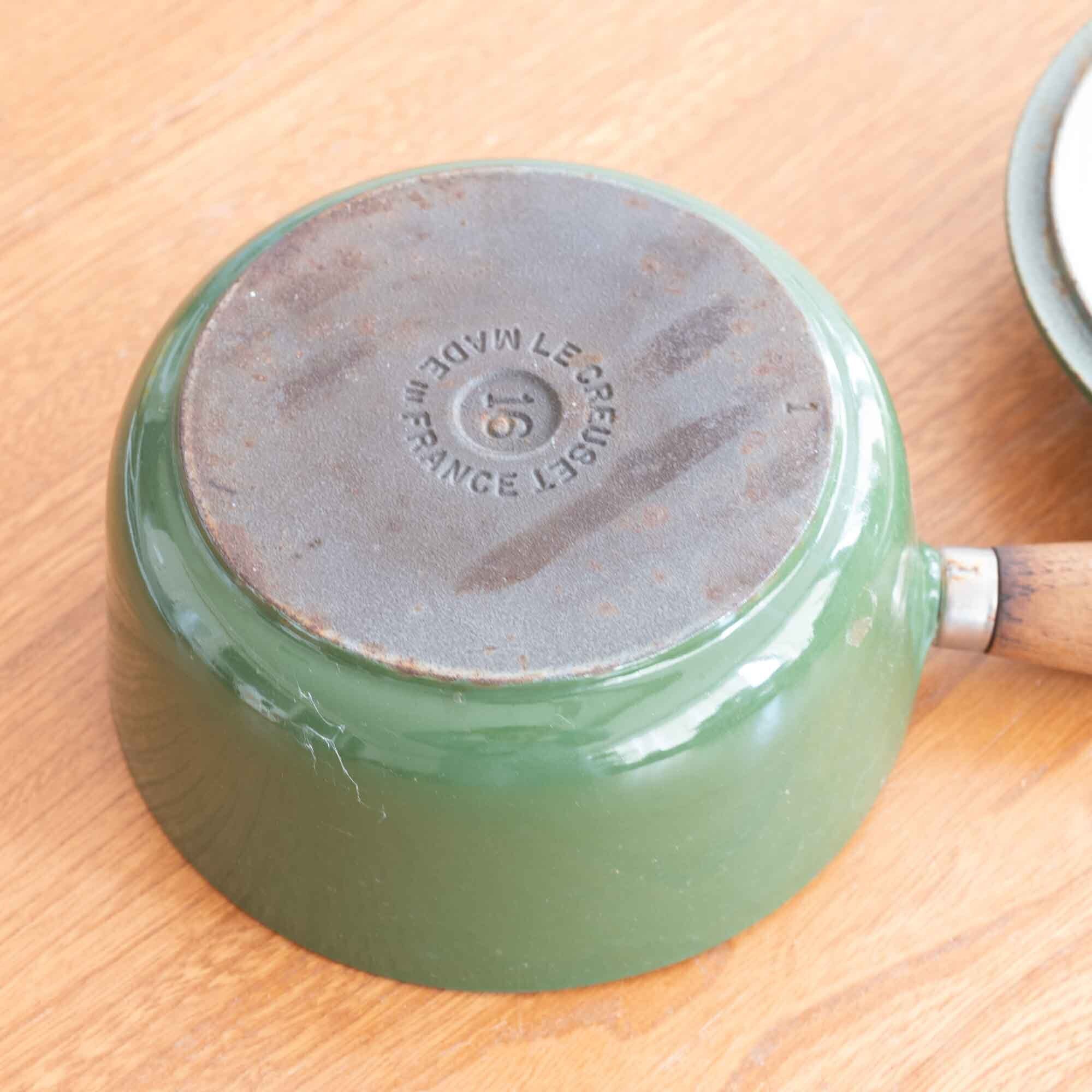 ビンテージ ル・クルーゼ LE CREUSET ソースパン グリーン サイズ16 木製ハンドル * 新品・未使用品ではありません *