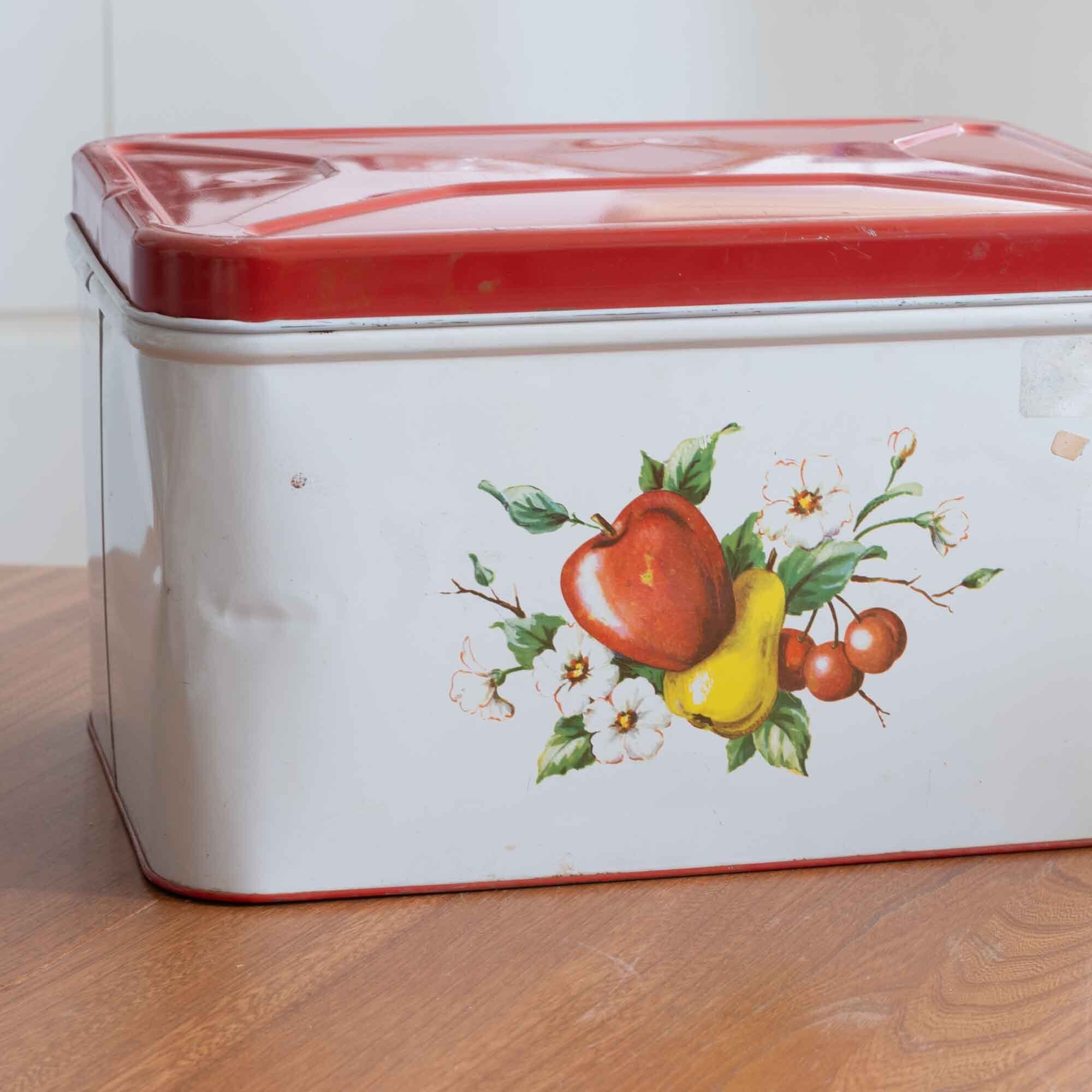 フルーツが美しくデザインされていて、素敵なブリキ缶です。