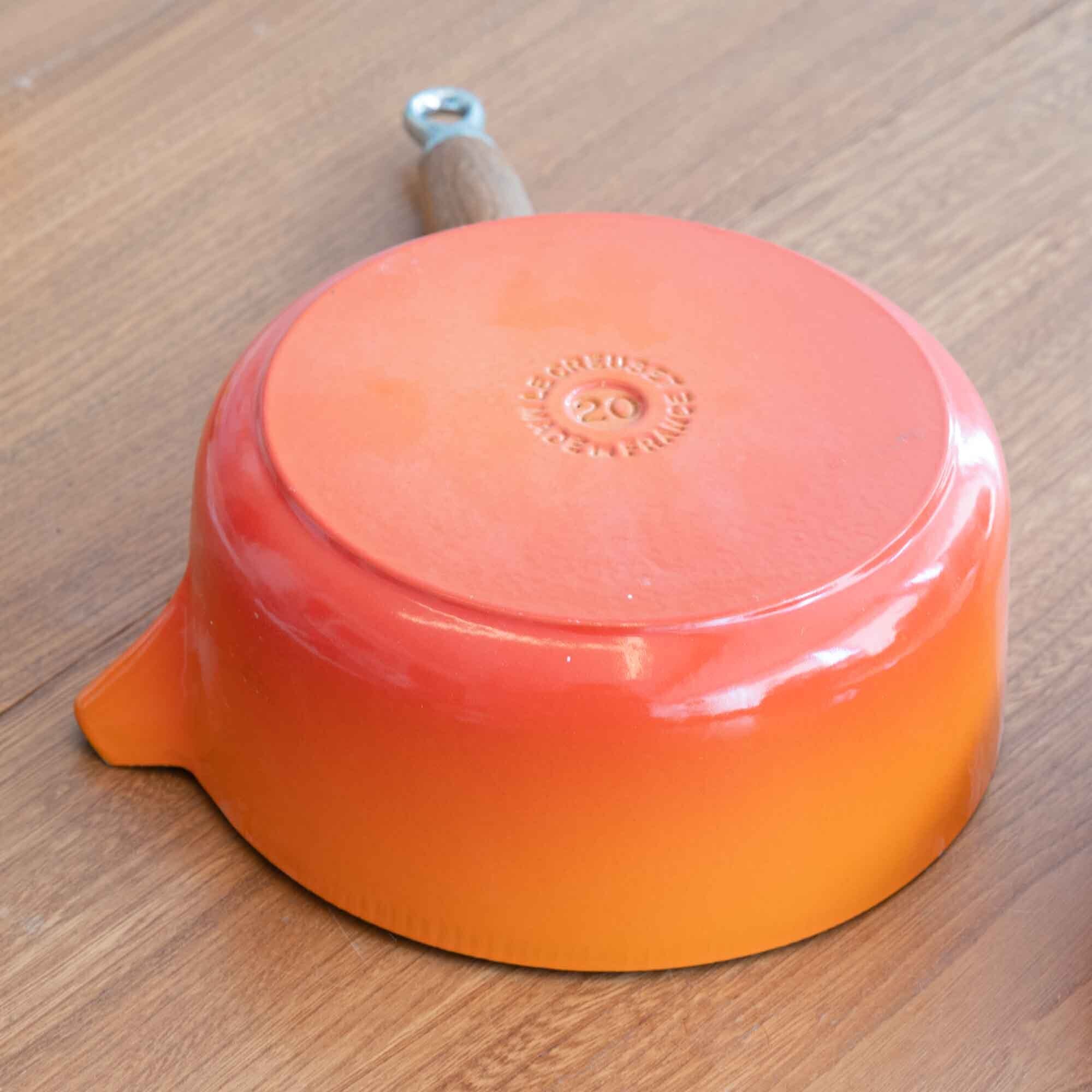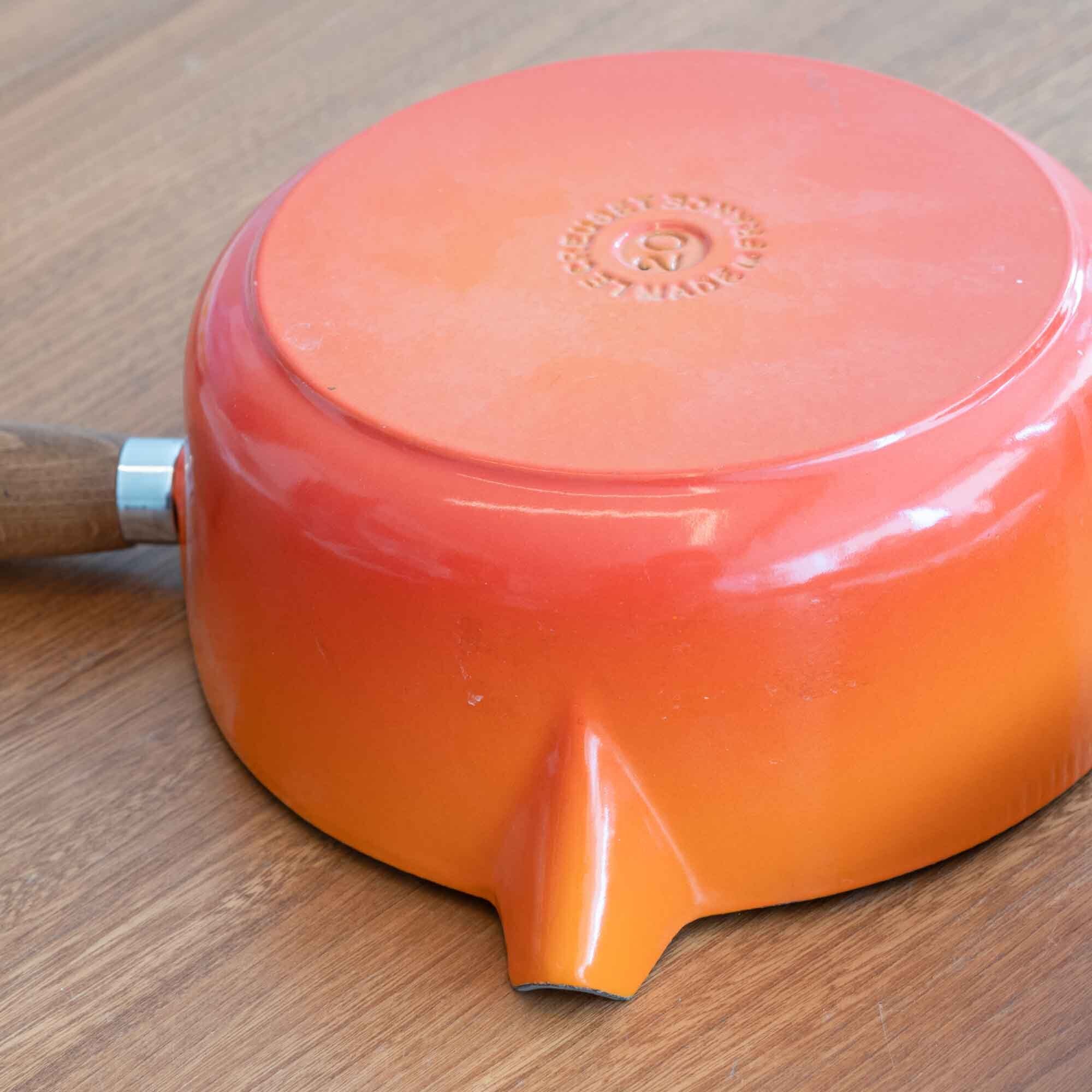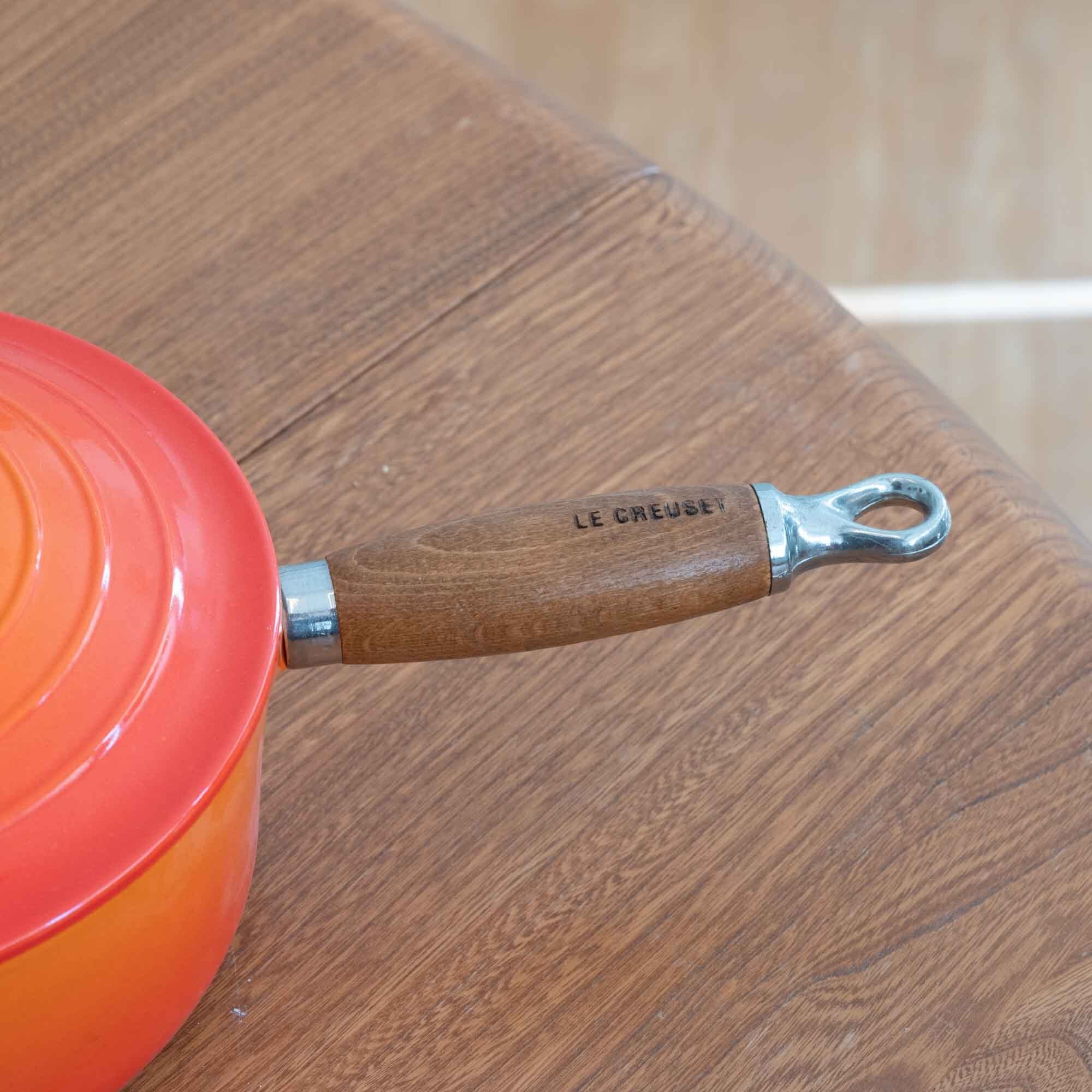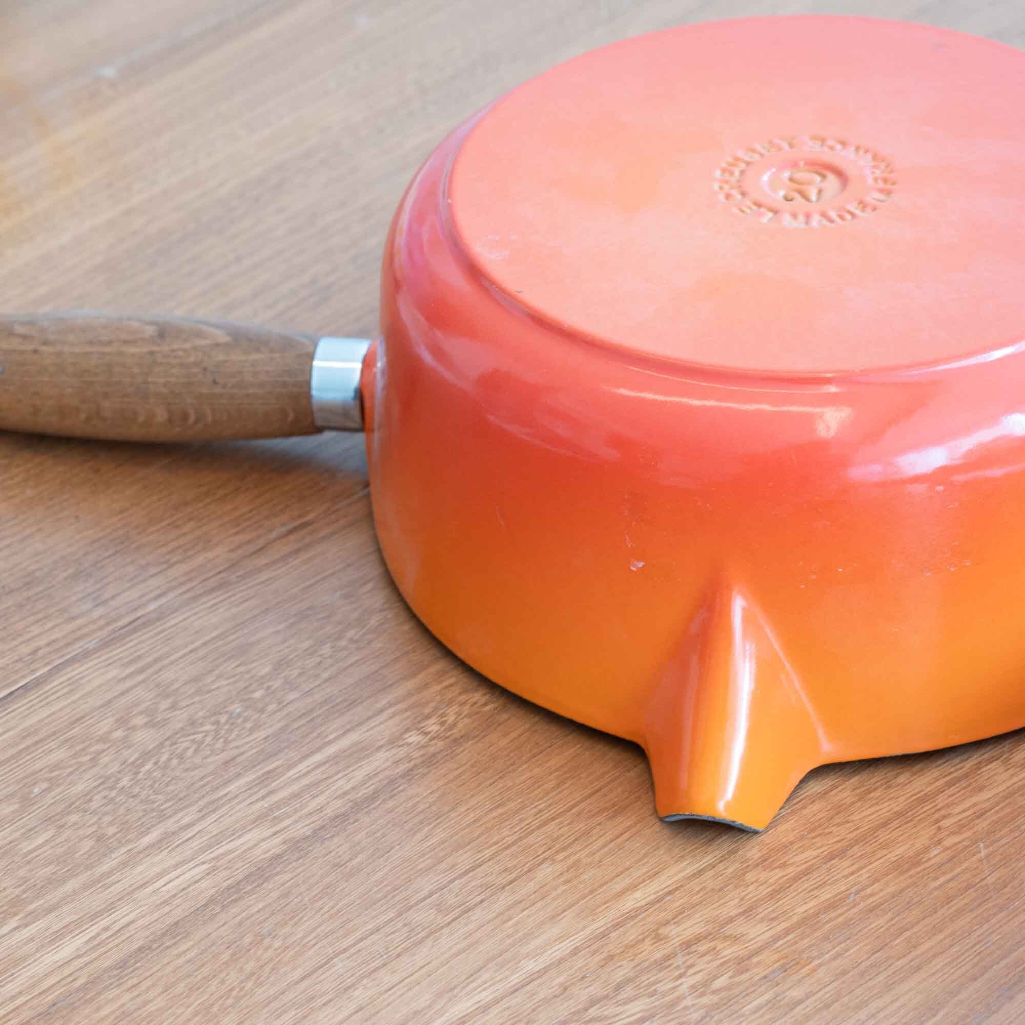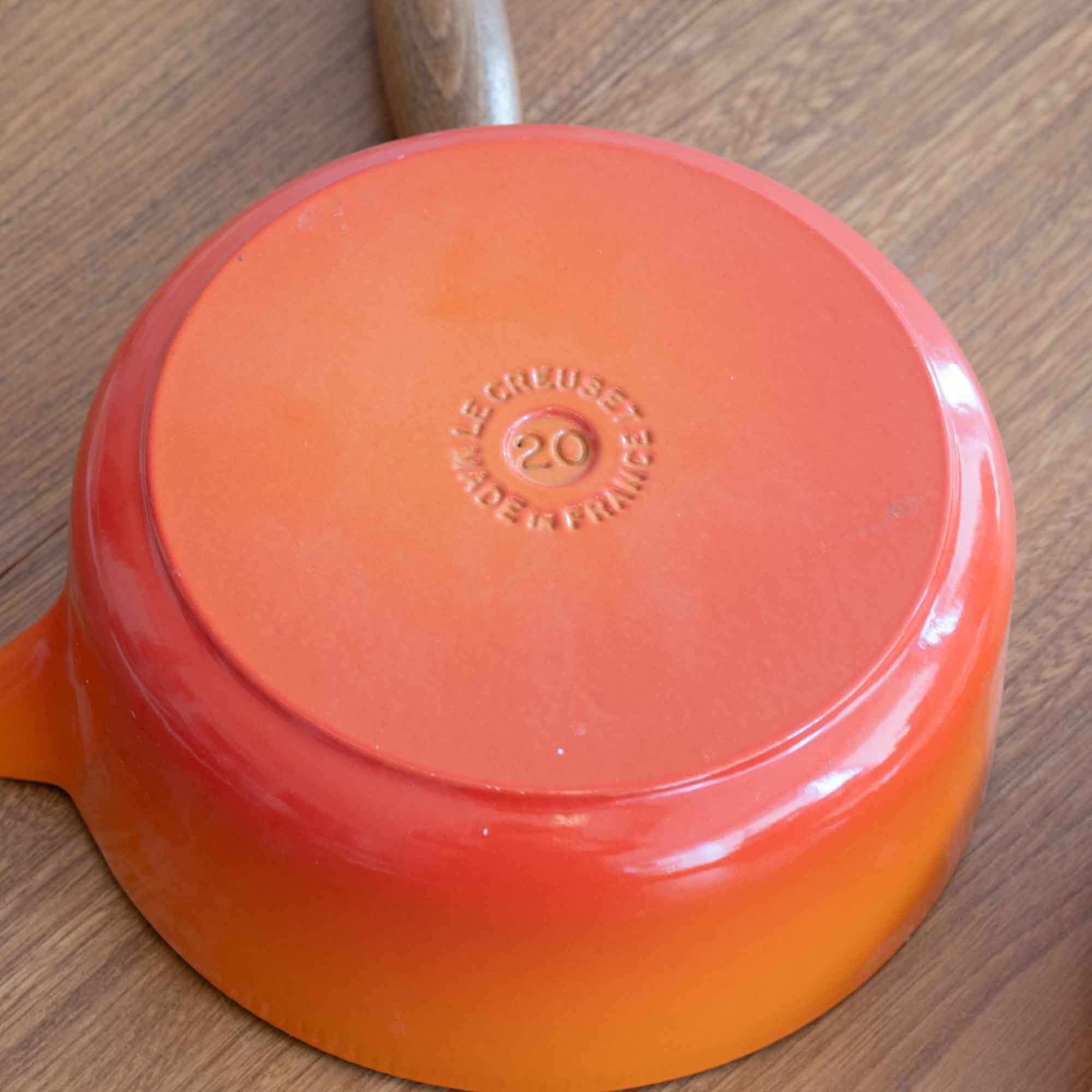 ビンテージ ル・クルーゼ LE CREUSET ソースパン オレンジ サイズ20 木製ハンドル * 新品・未使用品です *