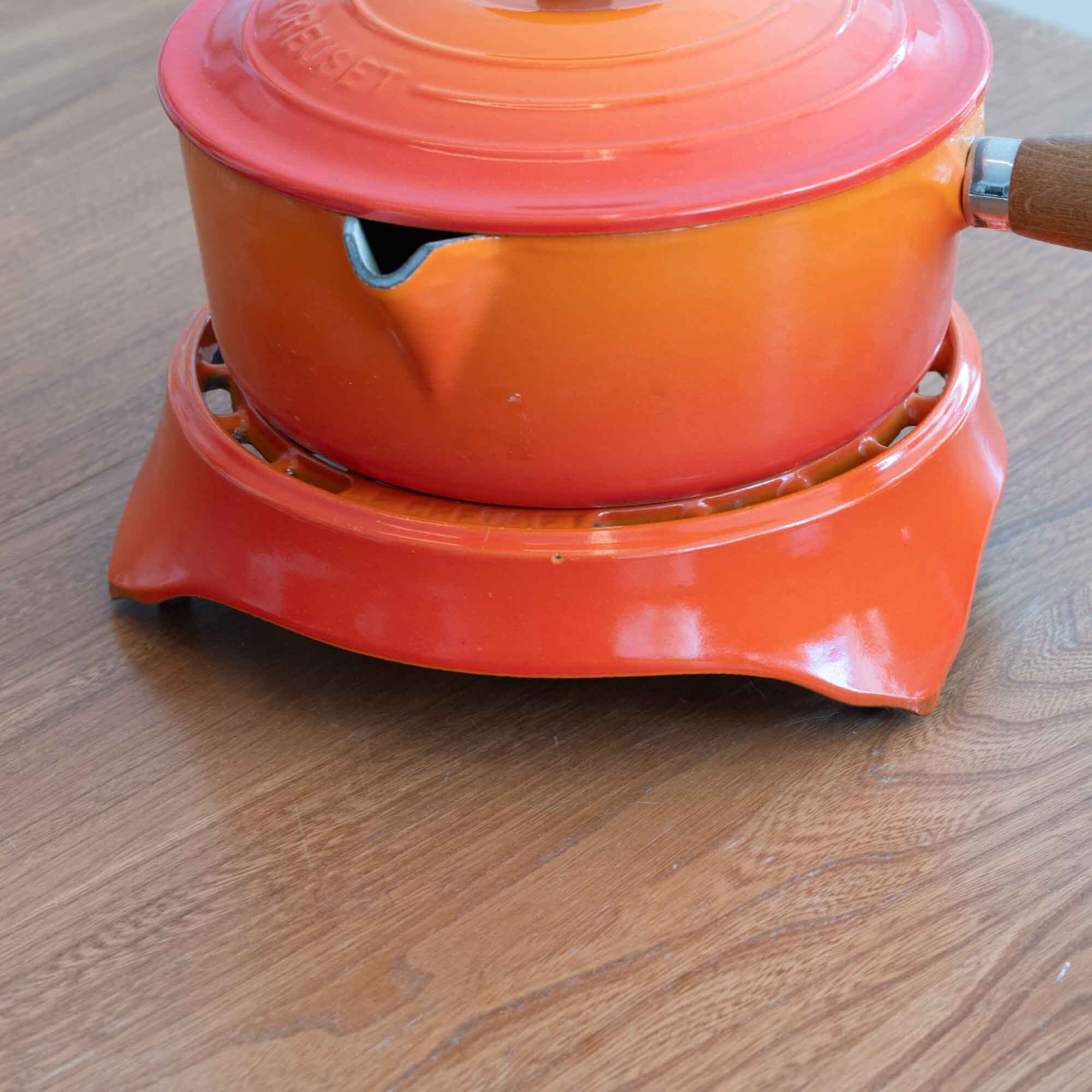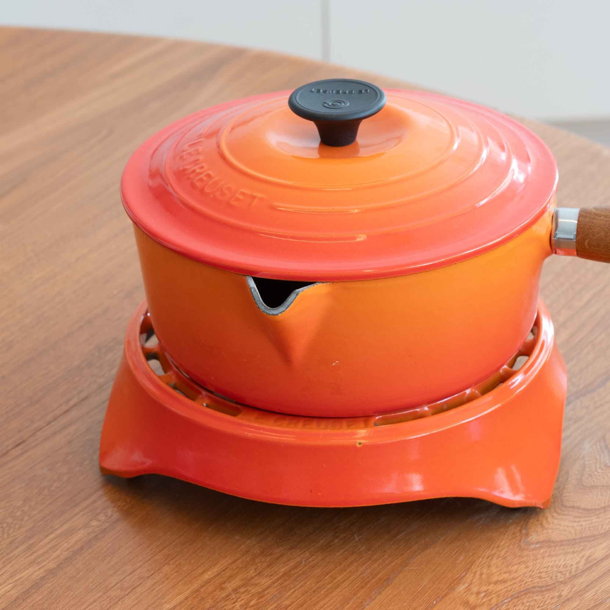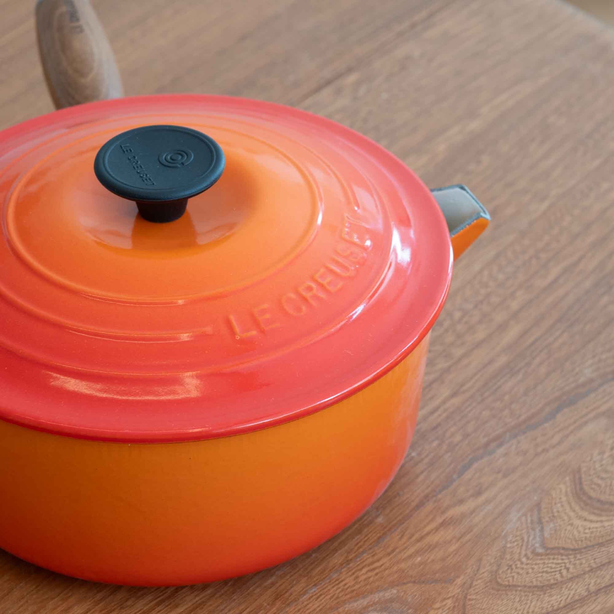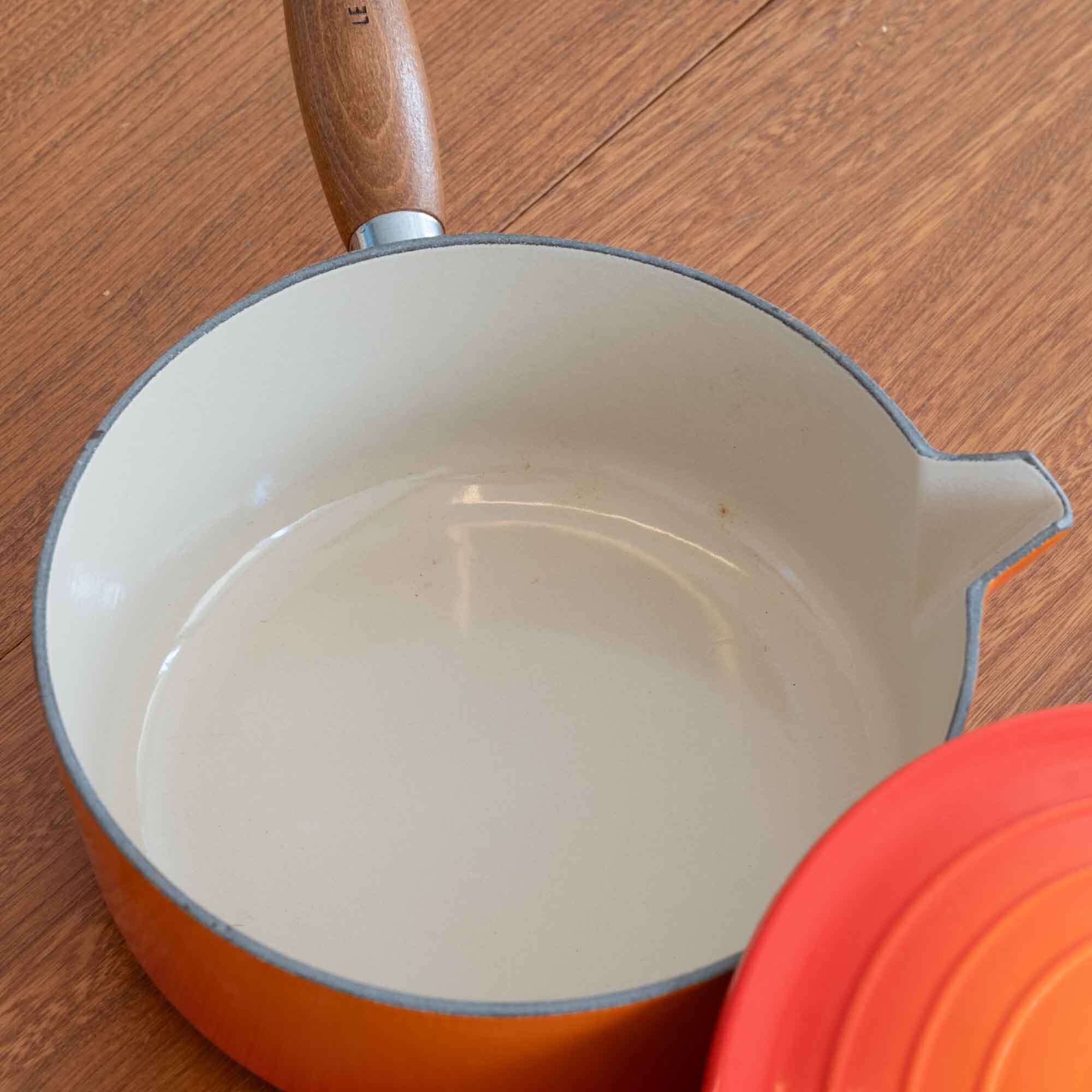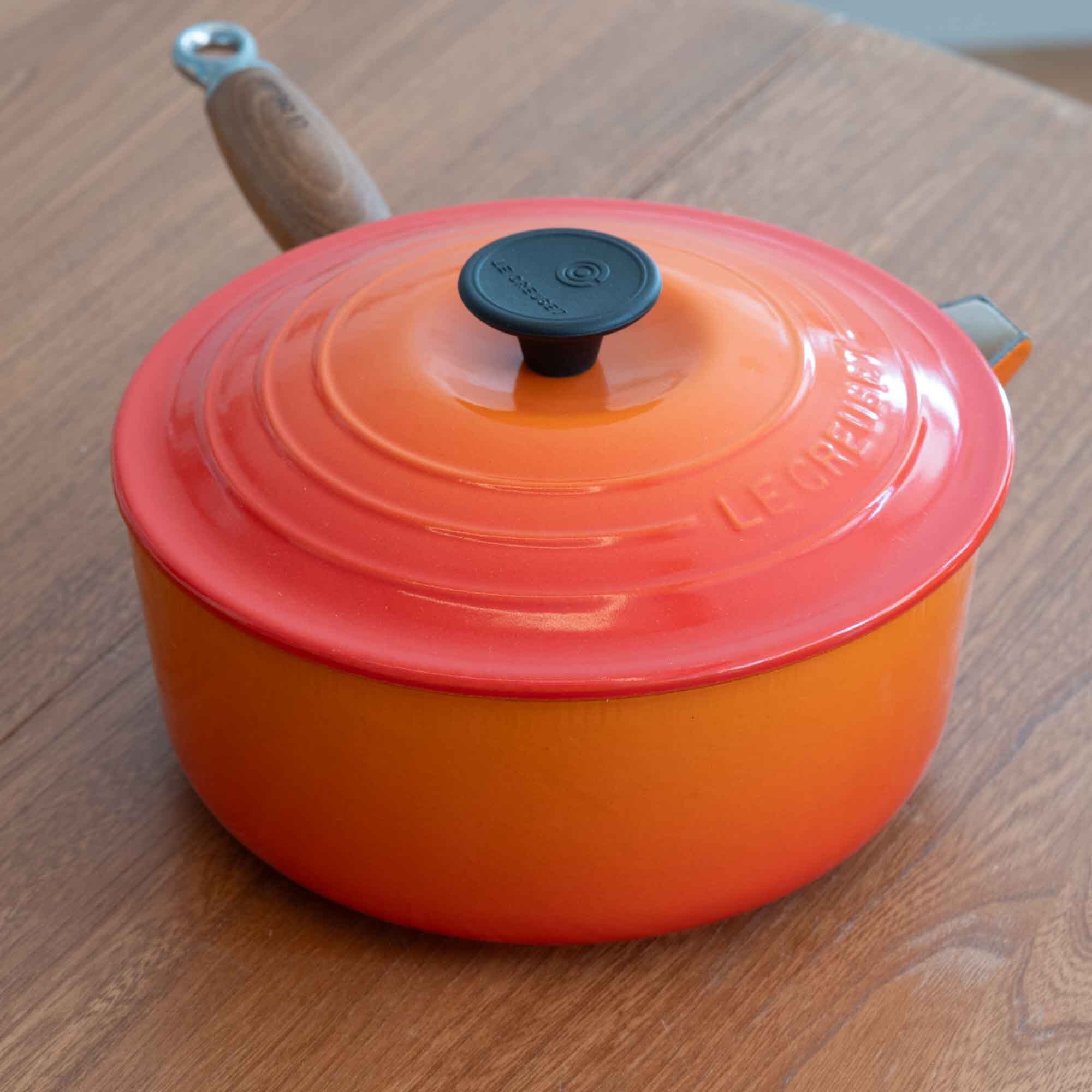 ビンテージ ル・クルーゼ LE CREUSET ソースパン オレンジ サイズ20 木製ハンドル * 新品・未使用品です *