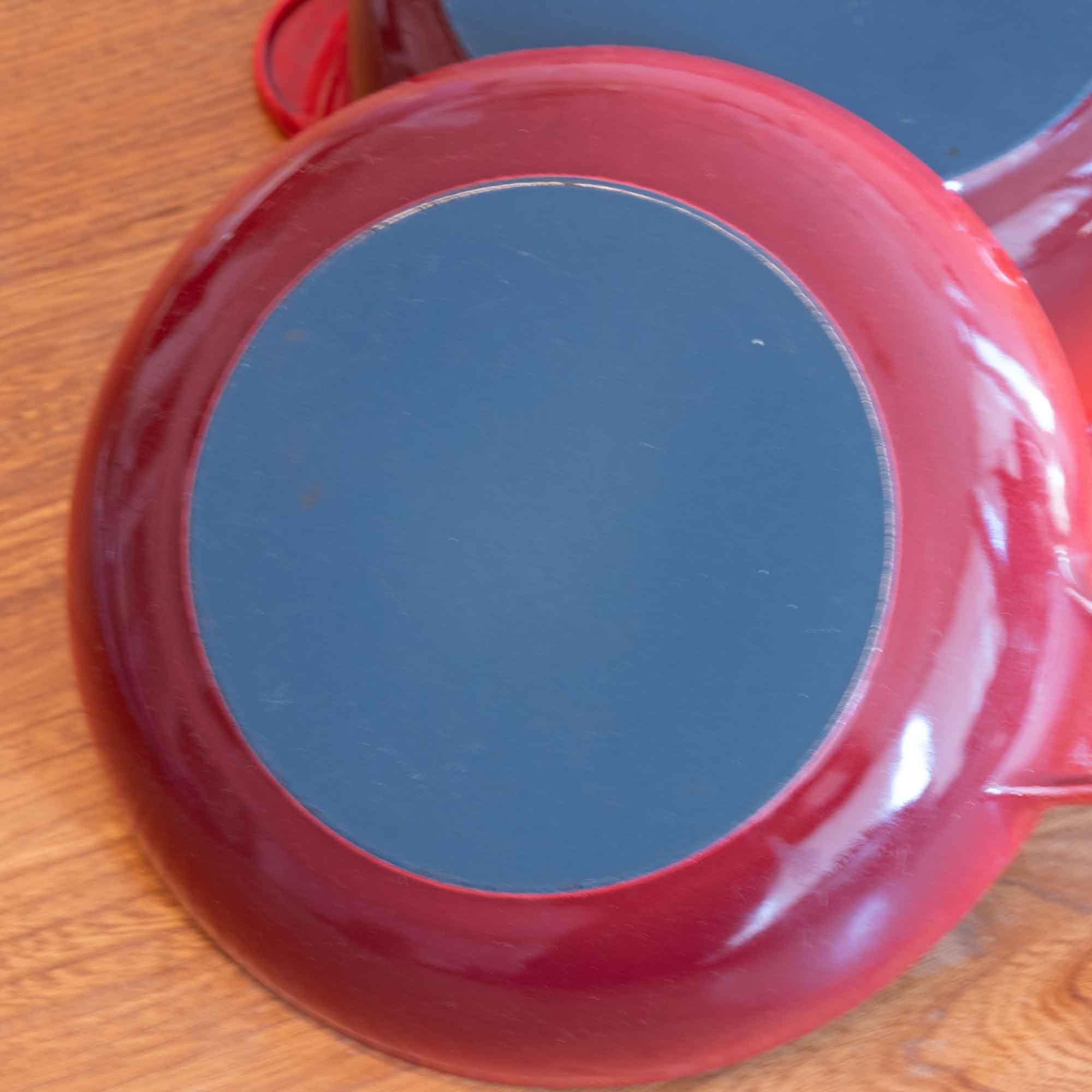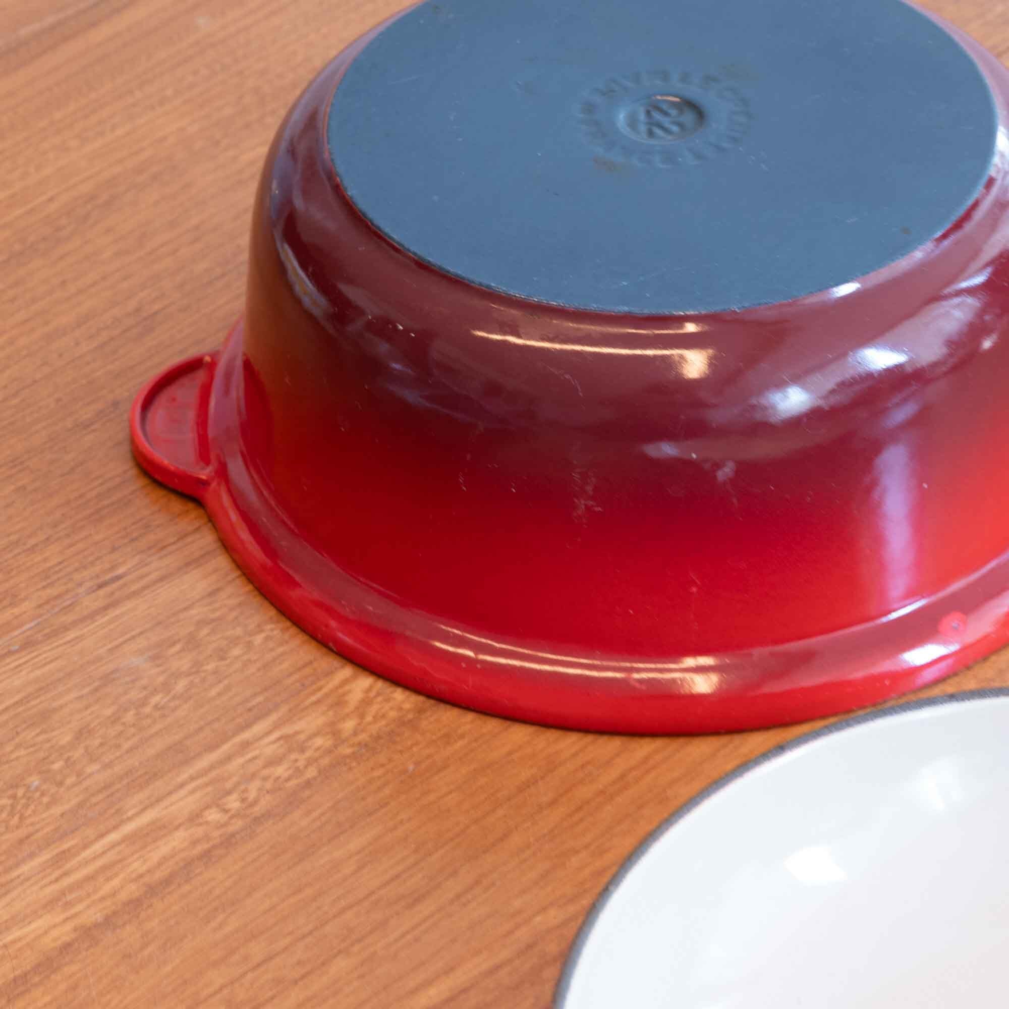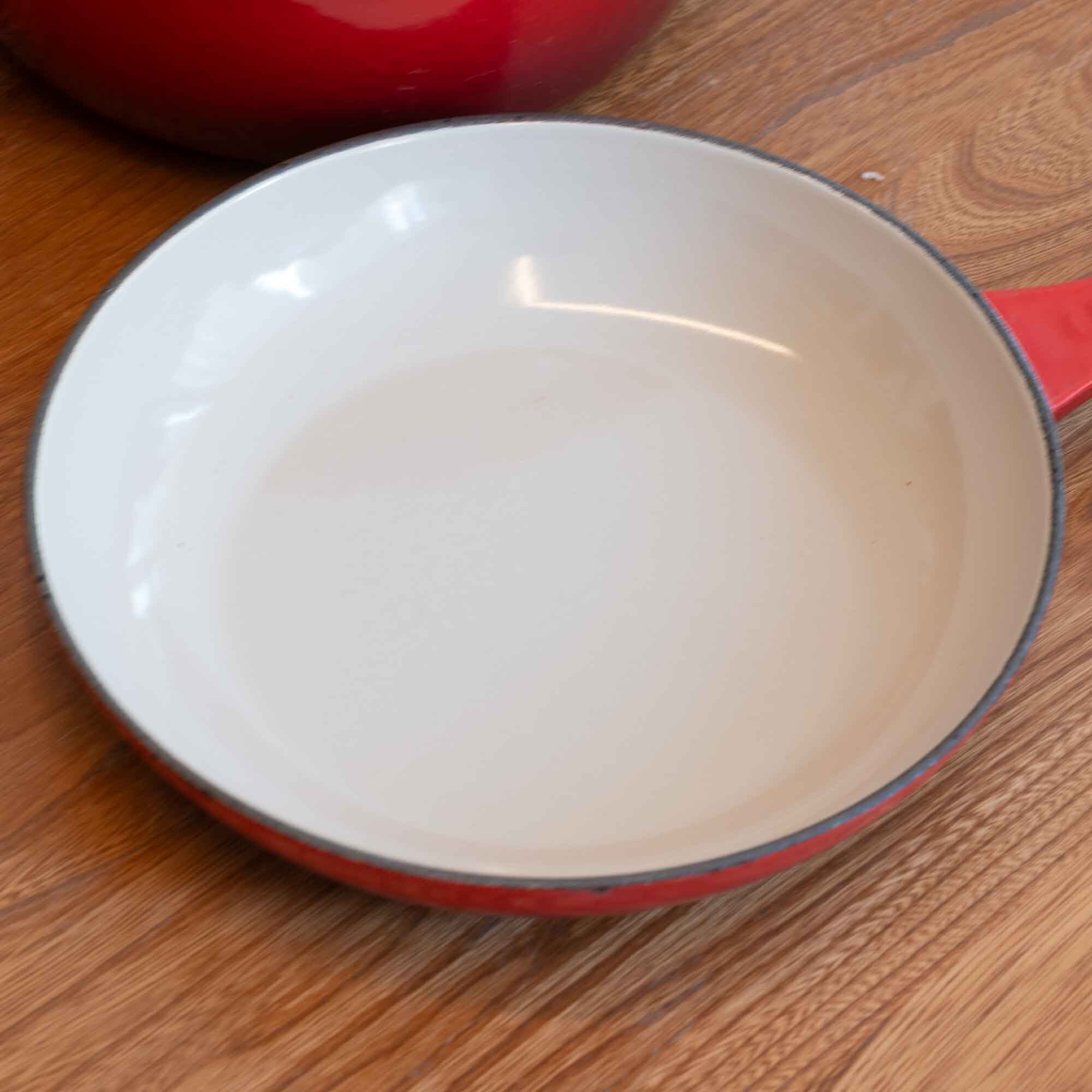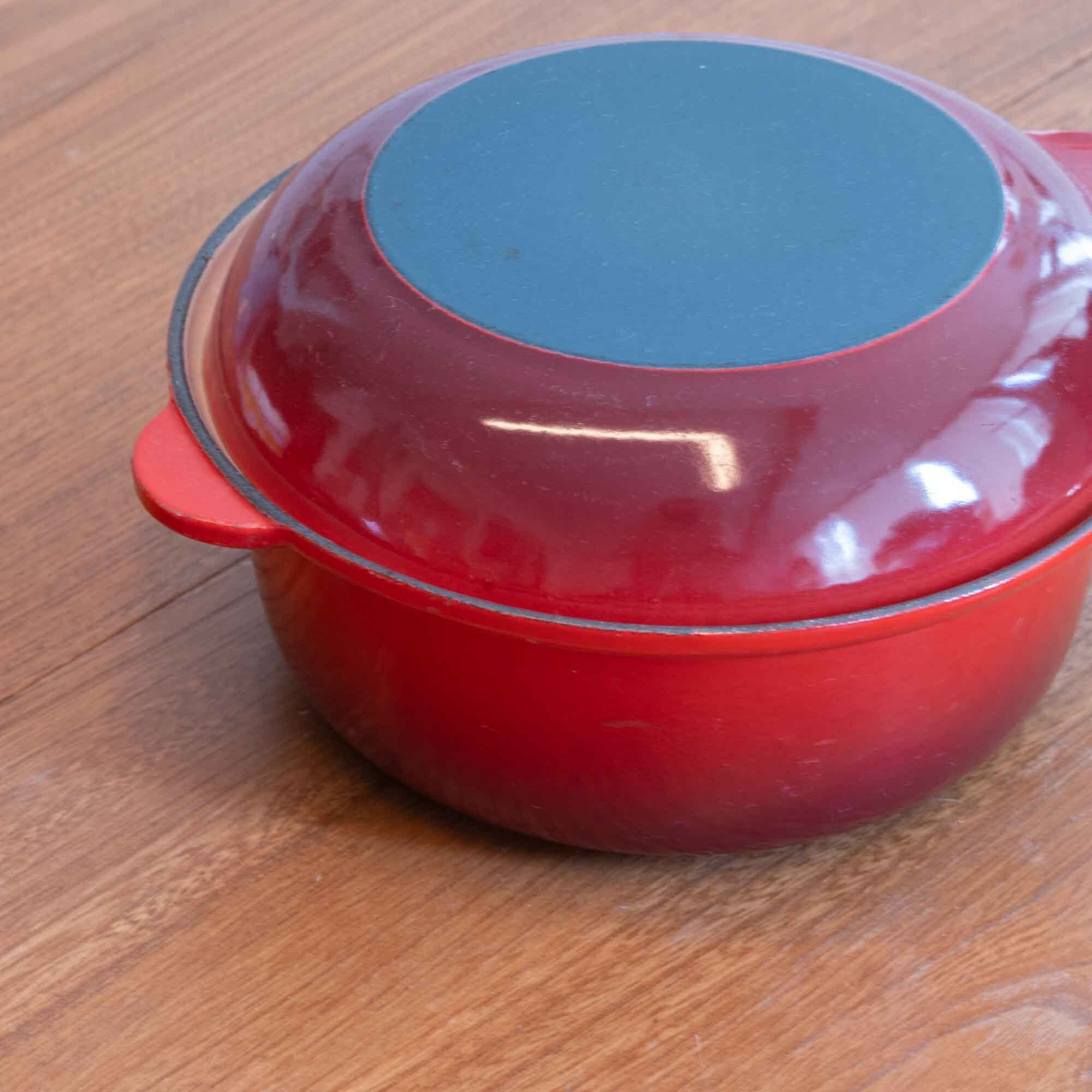 ビンテージ ル・クルーゼ LE CREUSET サイズ22の比較的大きなマルチファンクションタイプです。 マルチファンクションタイプは、蓋もフライパンとして使えます。 カラーは人気のチェリーレッドです。 使用された形跡はありませんが、新品・未使用品ではありませんが、 艶もあり美しい状態です。
