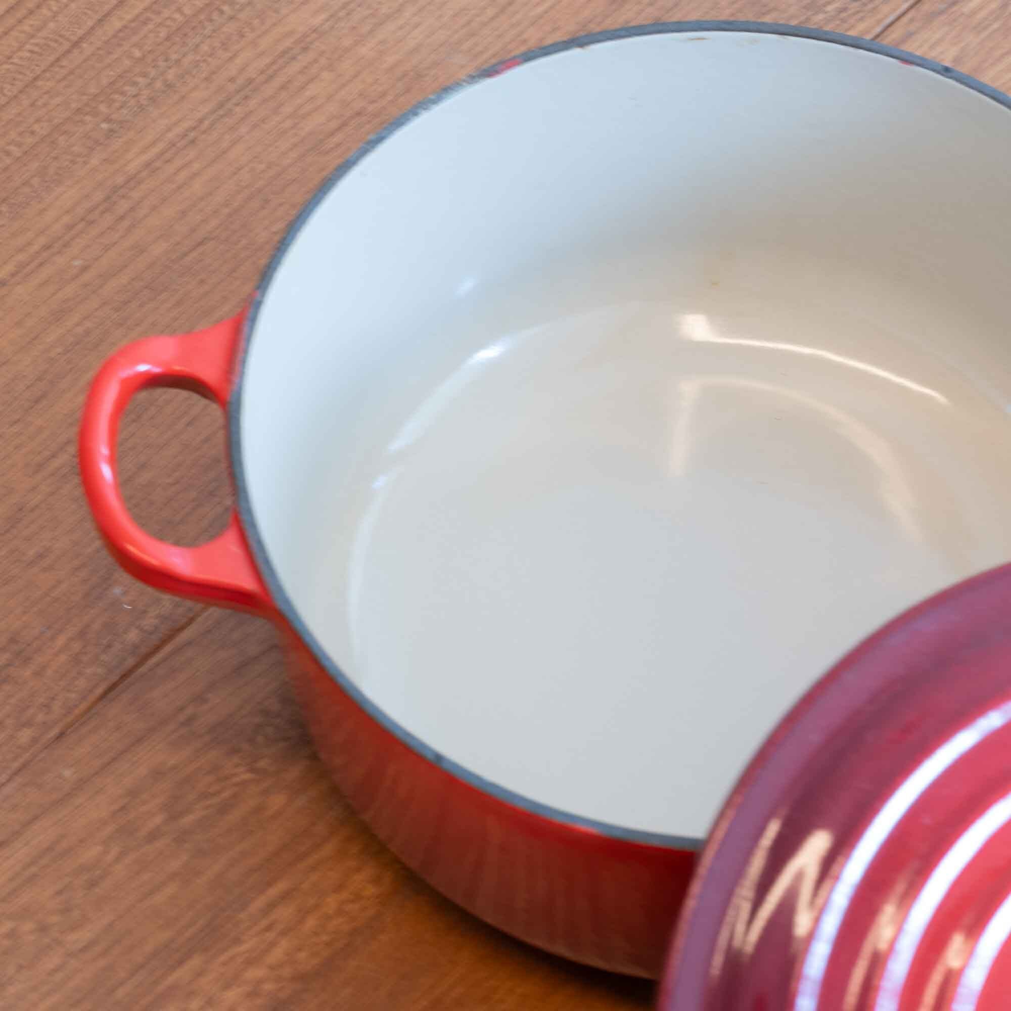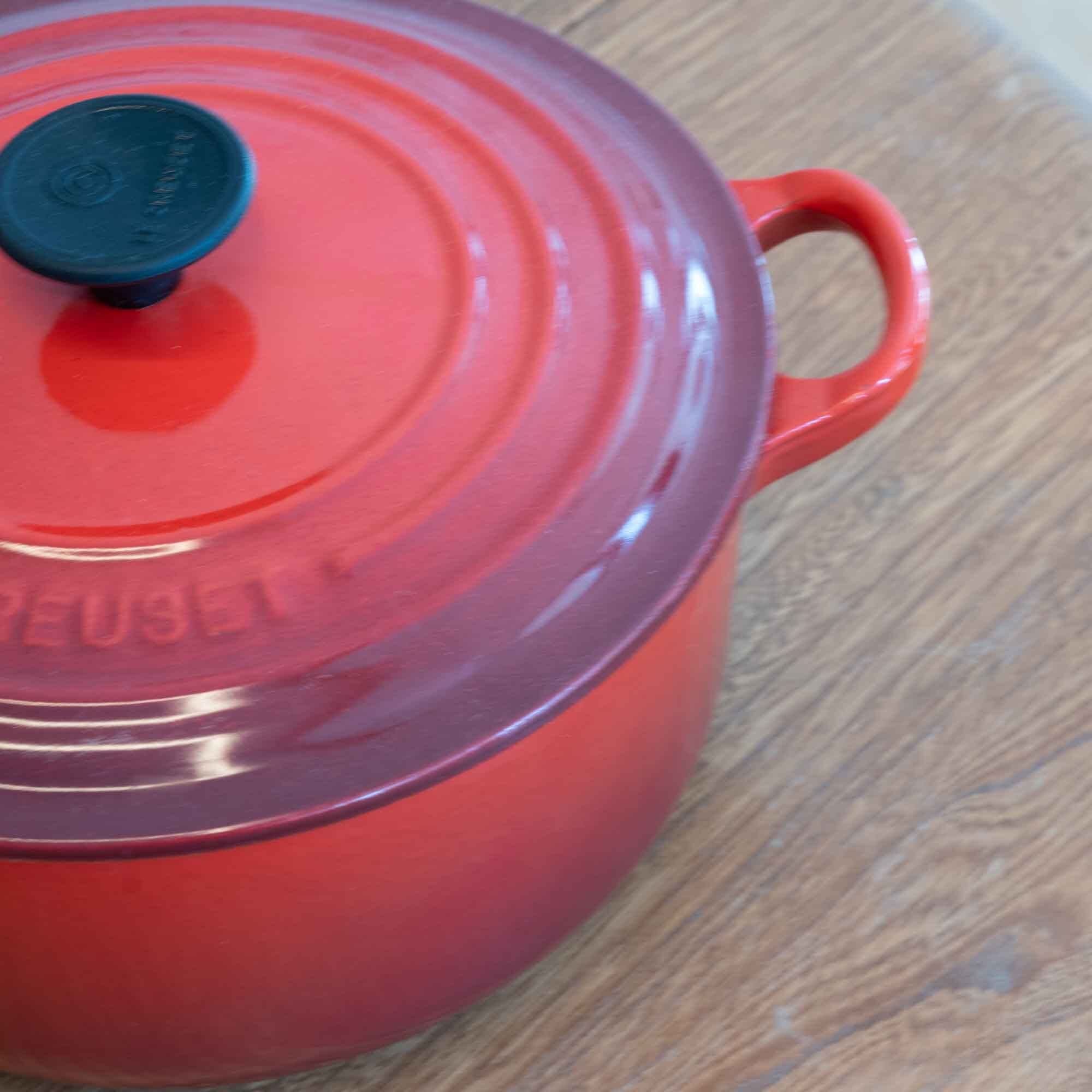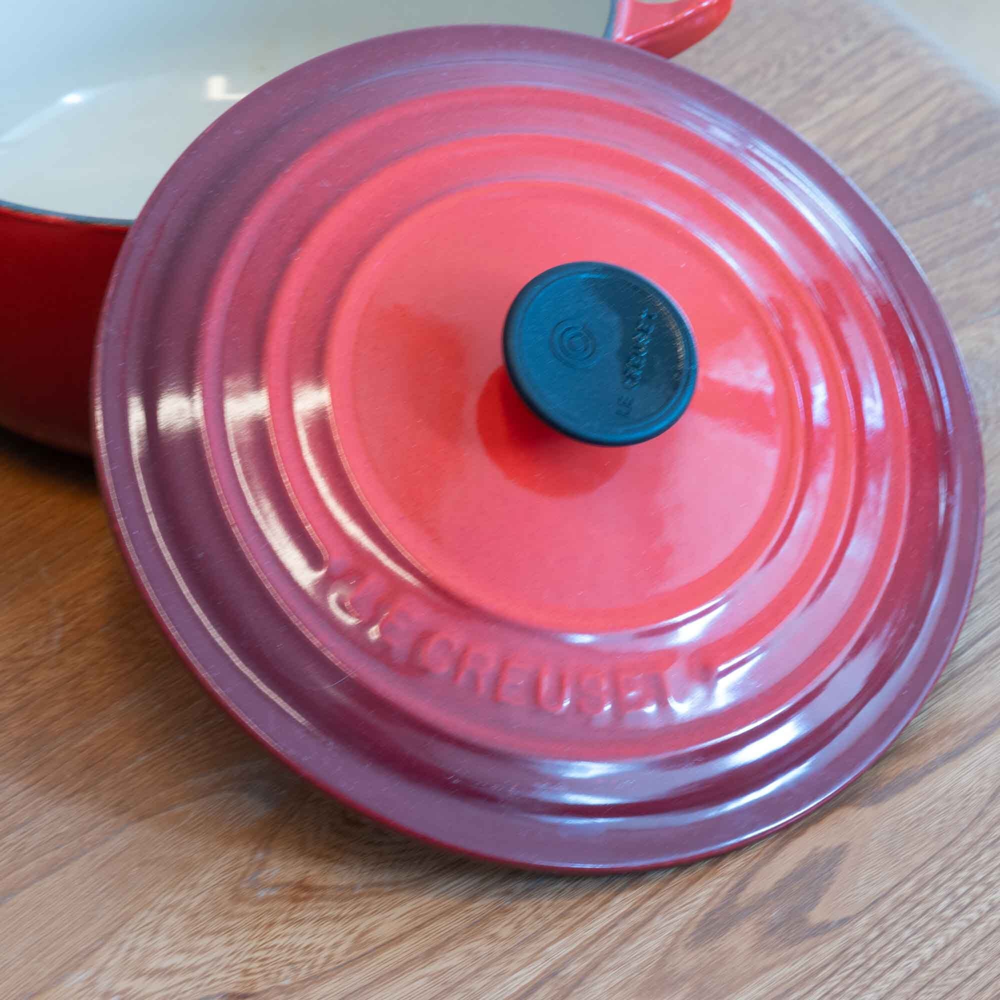 ビンテージ ル・クルーゼ LE CREUSET ですが、チェリーレッドはまだまだ現行品ですね! 使用感はありません。 未使用品と思いますが、箱などはありません。 ル・クルーゼ LE CREUSETは、価格が上昇していますので、こちらで試されるのもいいかと思います。 経年変化はありますが、美しいお鍋です。