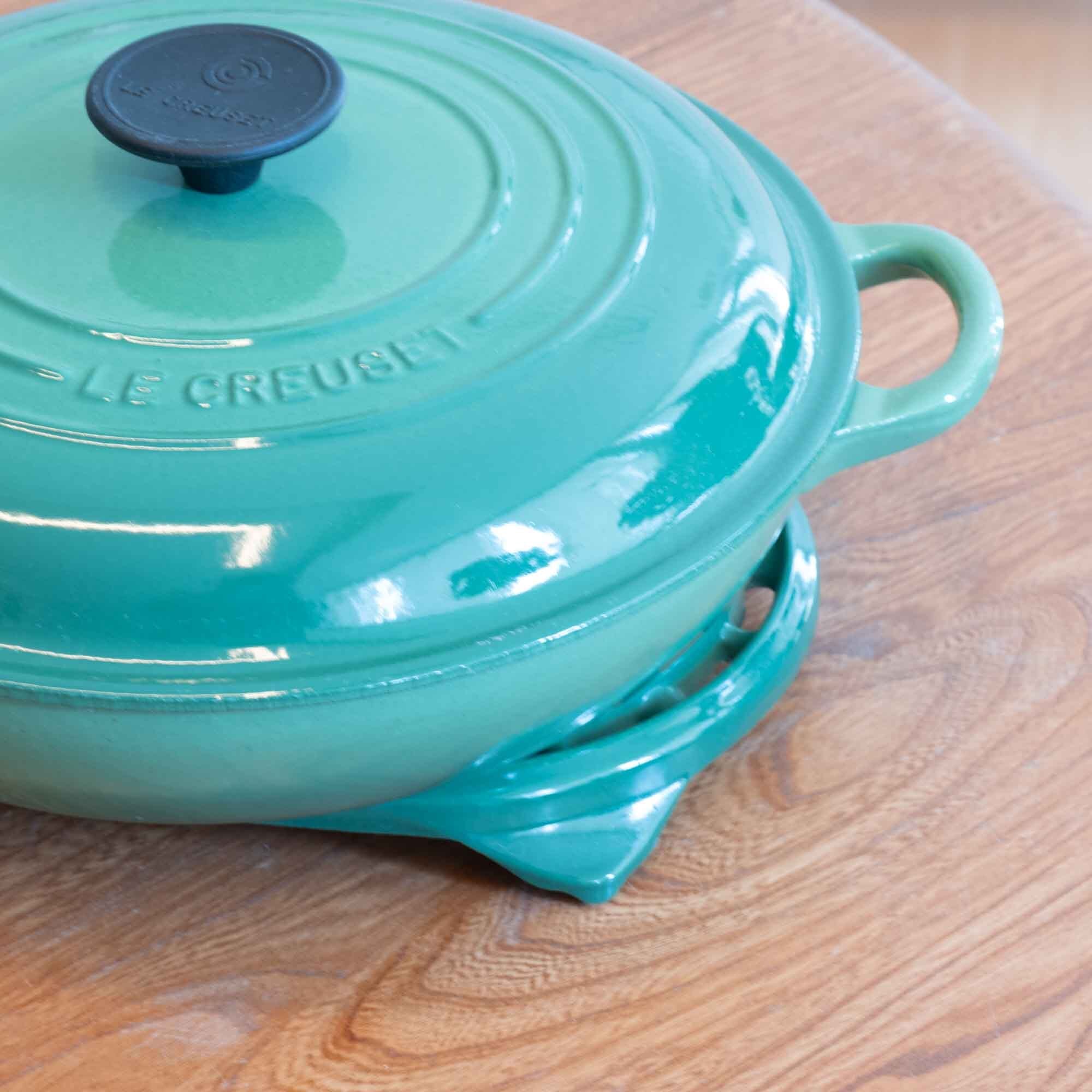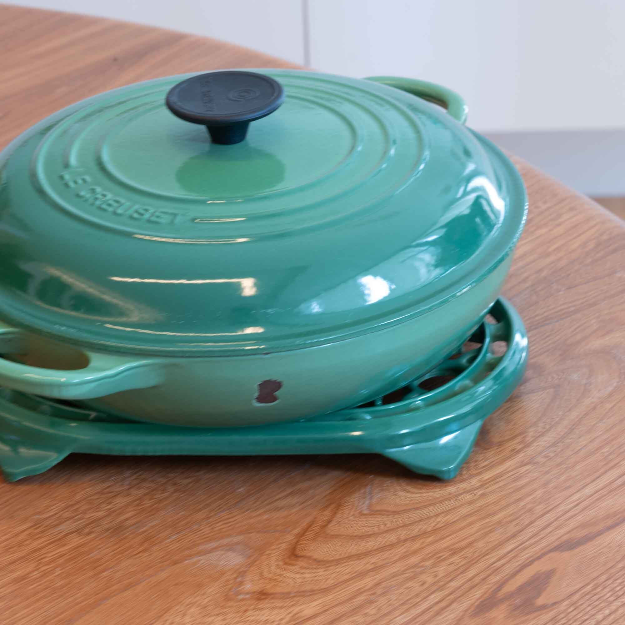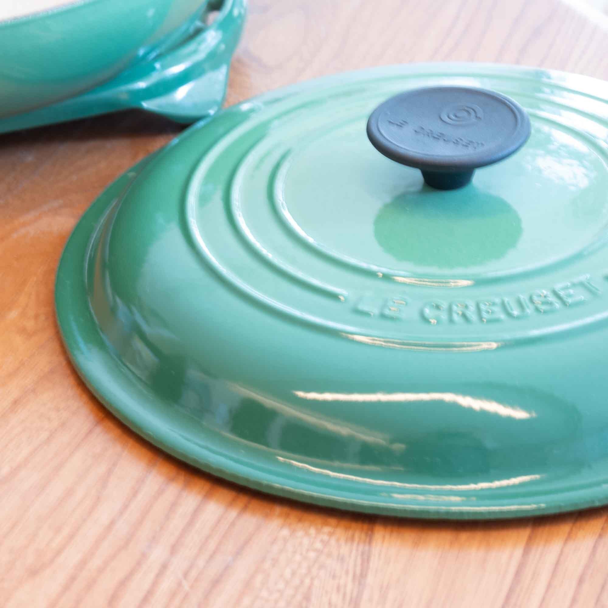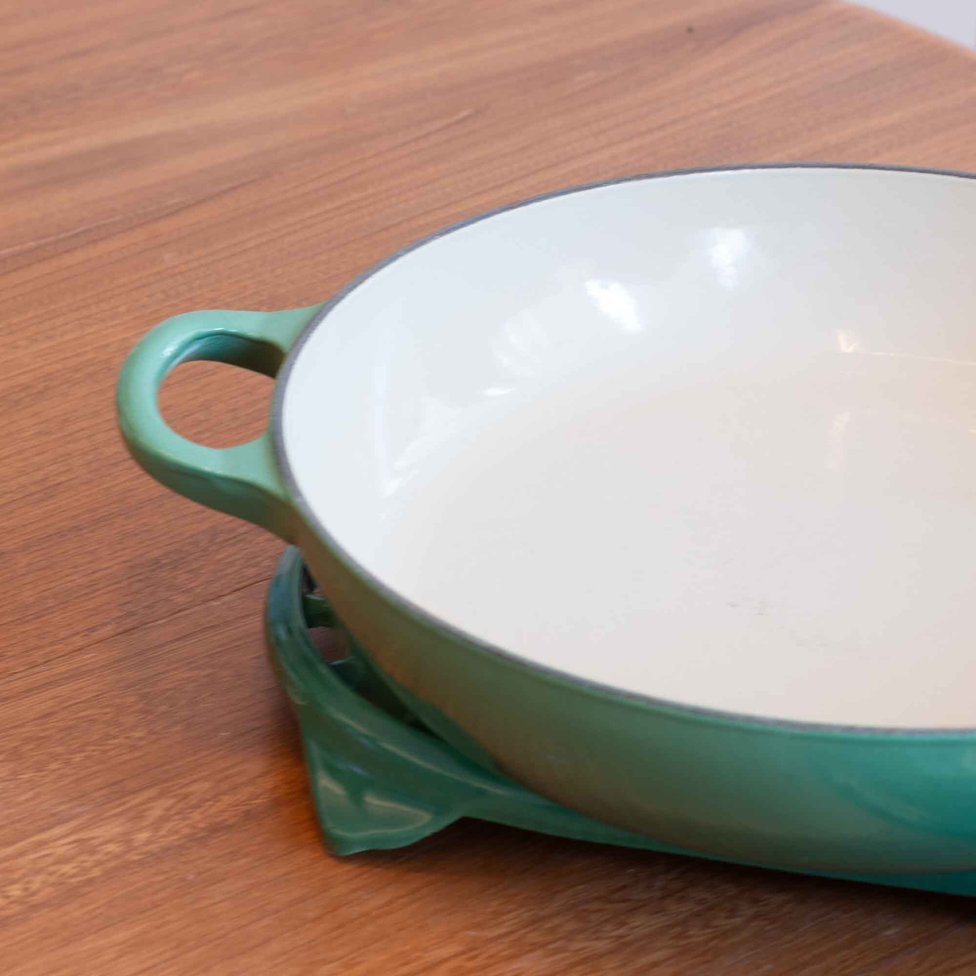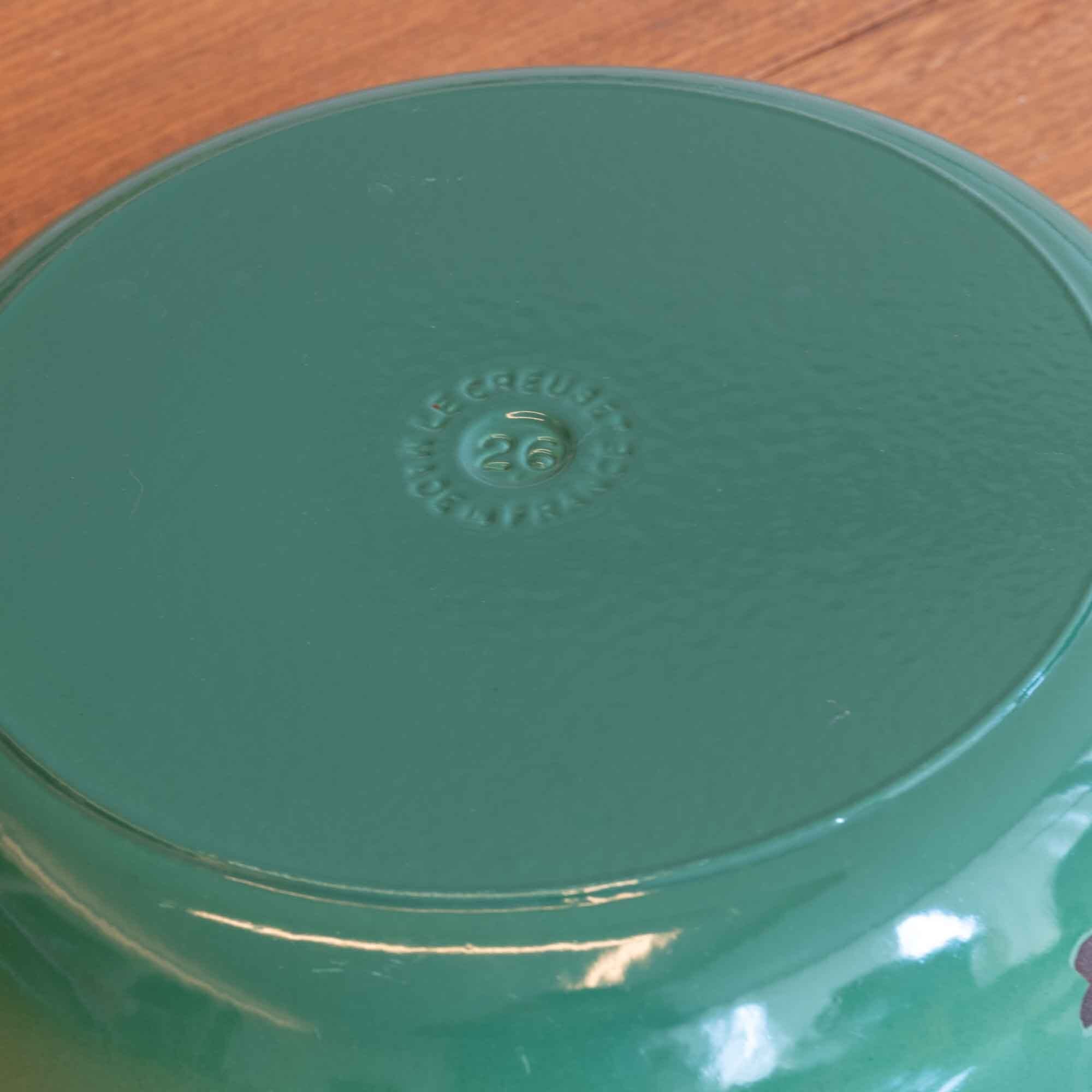 ビンテージ ル・クルーゼ LE CREUSET ビュッフェキャセロール サイズ26 グリーンカラー 瑕疵ありです。新品・未使用品ではありません!