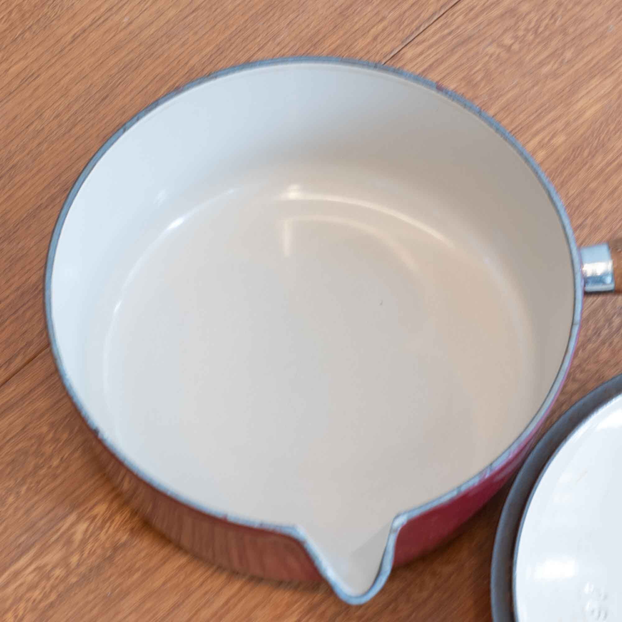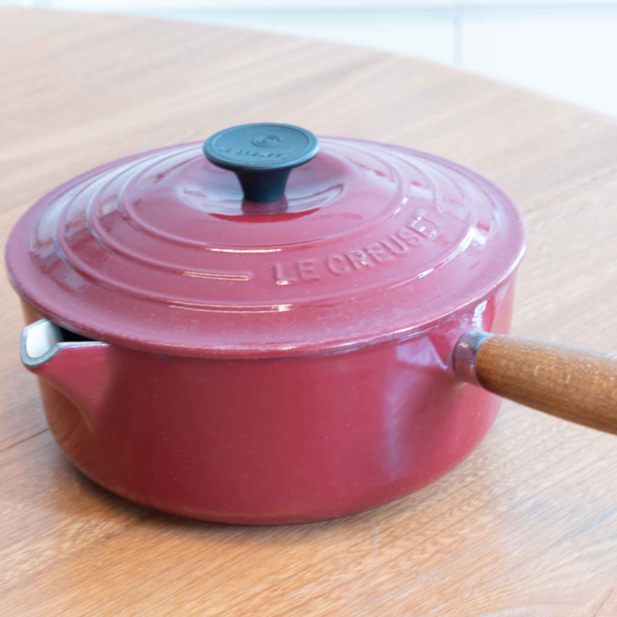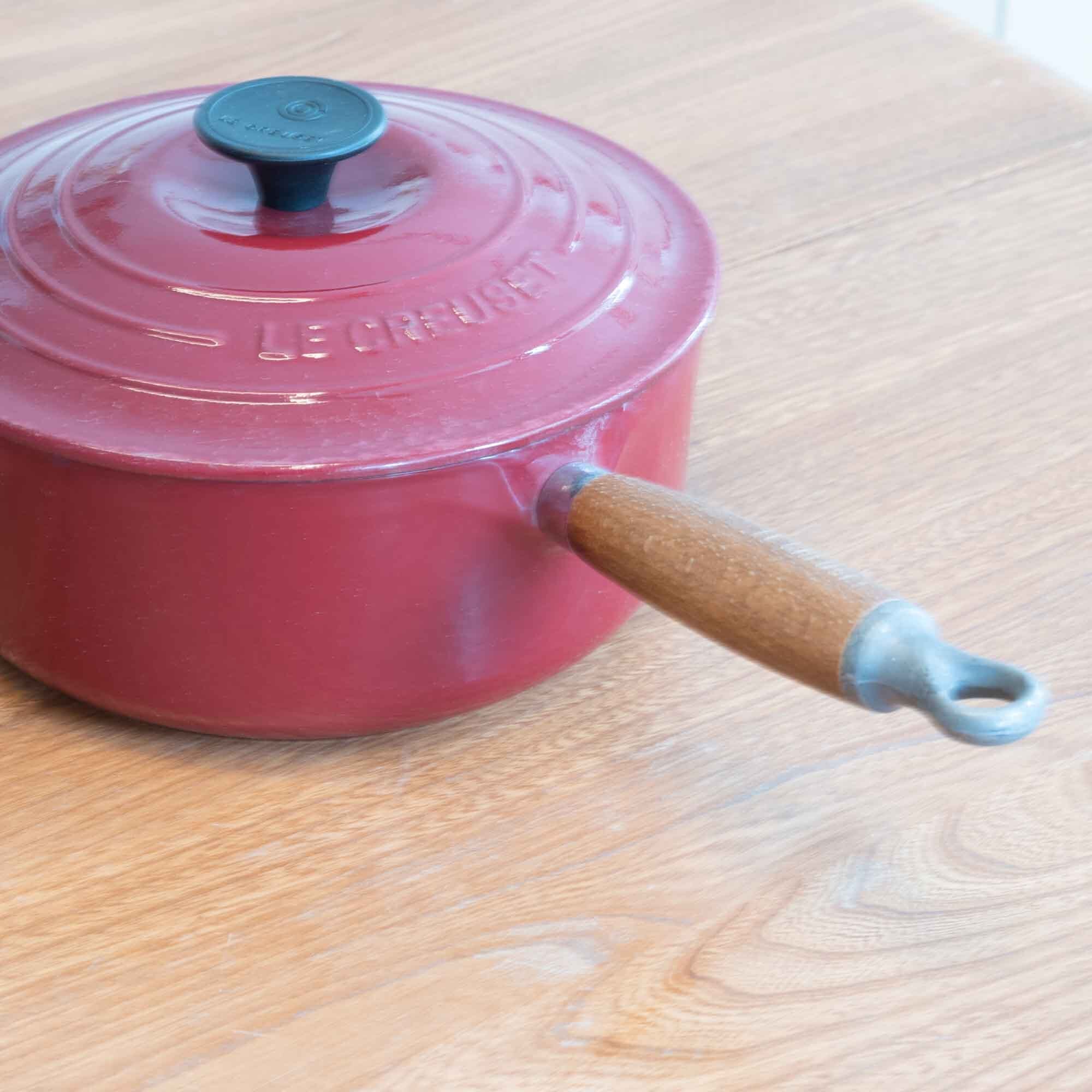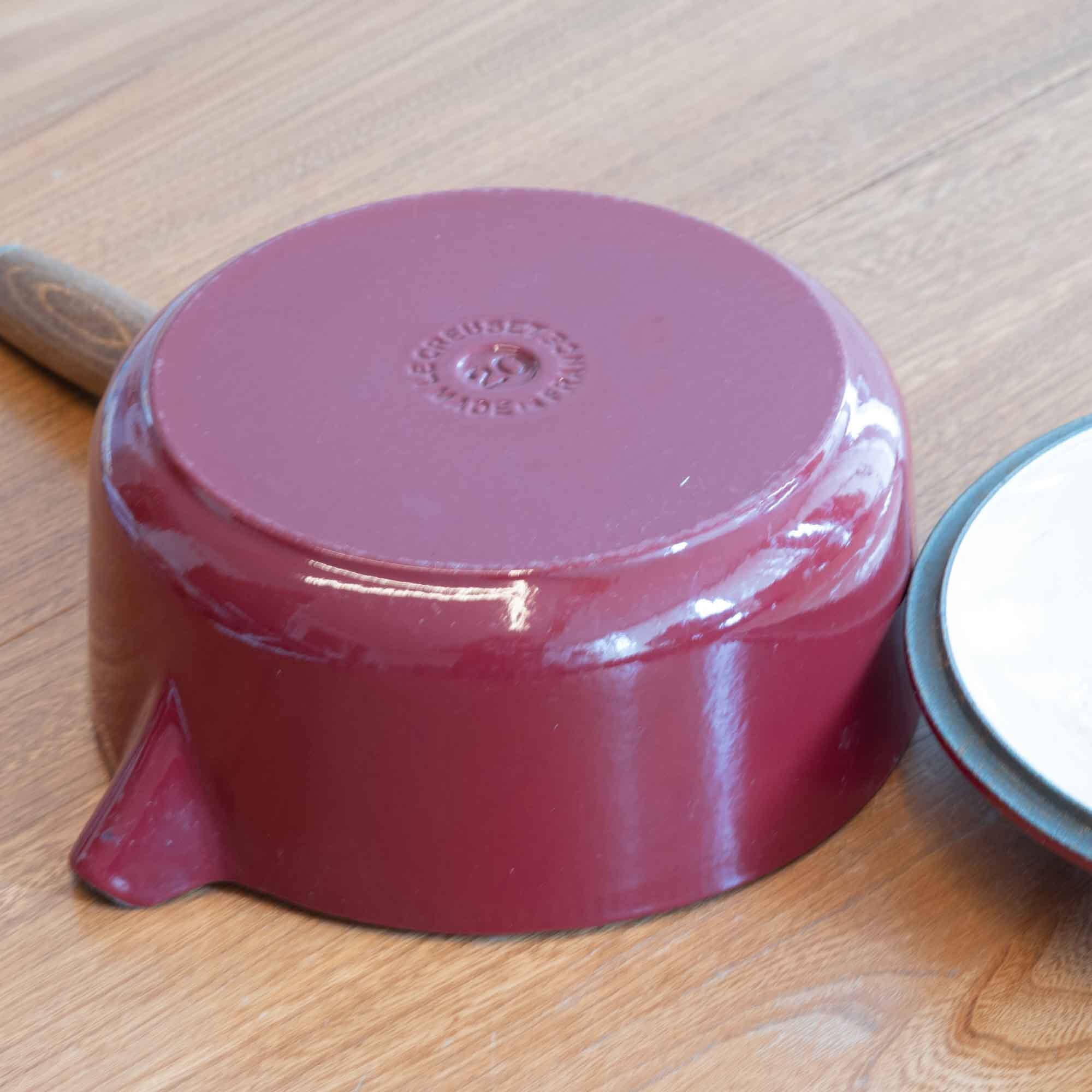 注! 新品・未使用品ではありません。 チェリーレッドではなく、落ち着いたバーガンディーカラーです。 使用感や経年変化による錆などもみられますが、木製ハンドルと共にいい味ですね♪ キッチンにあると、素敵なインテリアとしてもおすすめです、 使用度は少ないと思います。