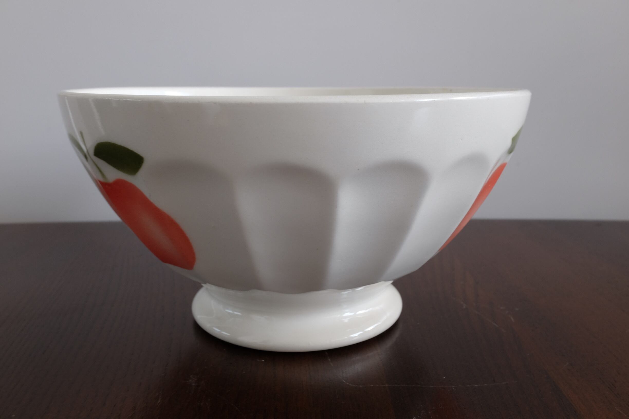 大きな大きなカフェオレボウル 重さもずっしりです。 DIGOIN&SARREGUEMINES (ディゴワン&サルグミンヌ)製 「S」の刻印は No.1 リンゴの模様