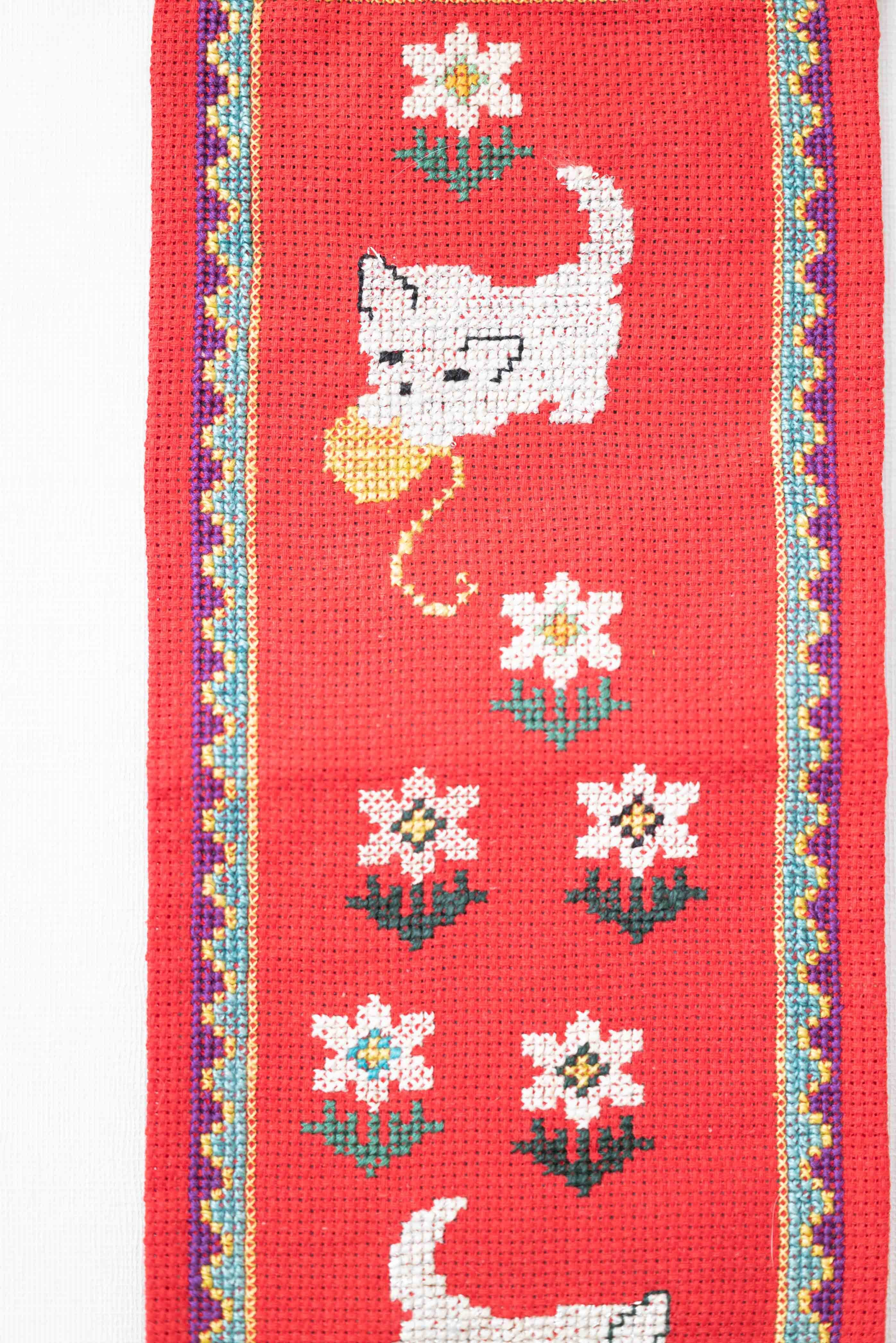北欧仕入れの手刺繍 壁掛けタイプ タペストリー ボールで遊ぶ猫ちゃんがかわいい!