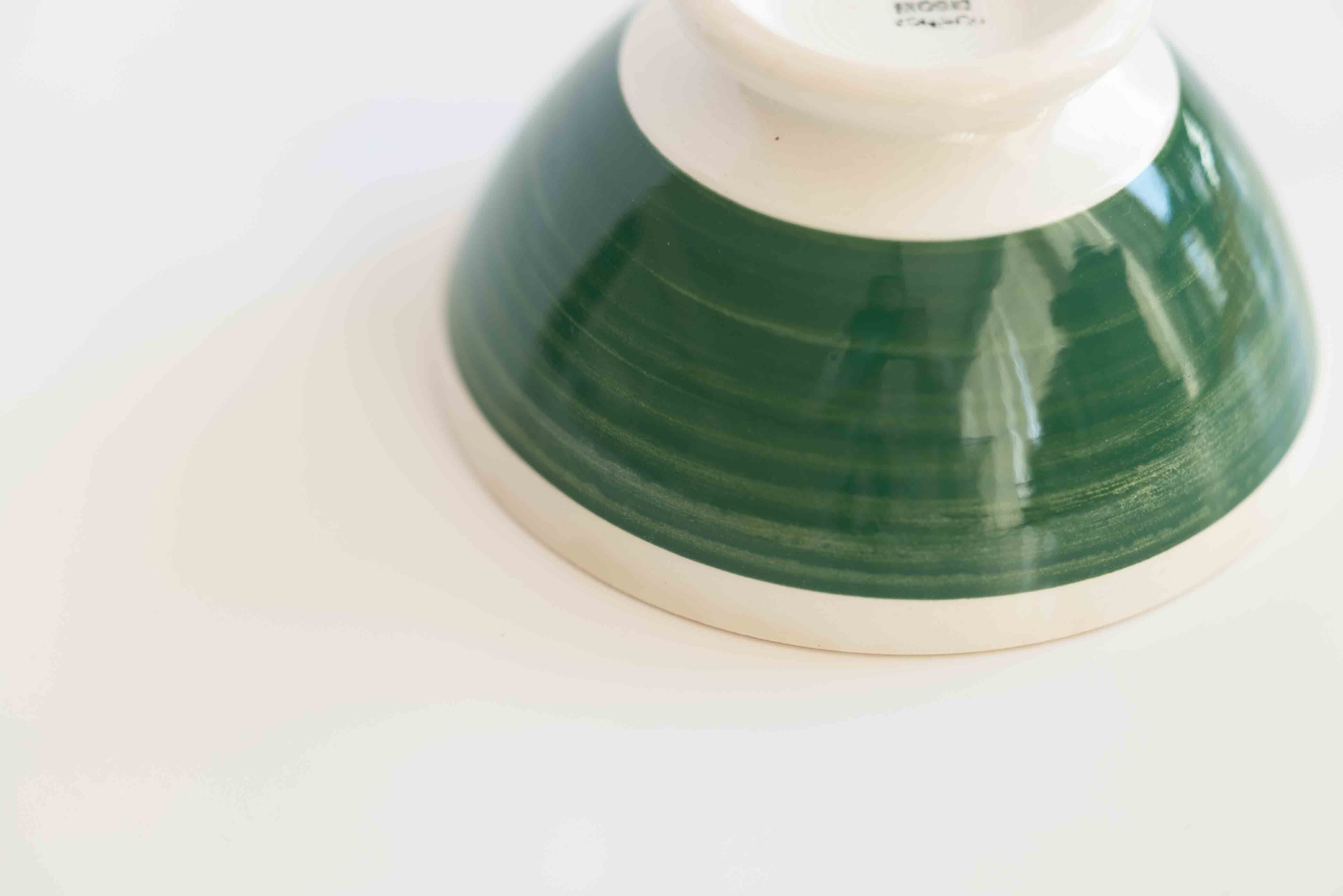 小降りのボウルですが、おそらく職人の手で描かれたグリーンのラインが迫力があります。