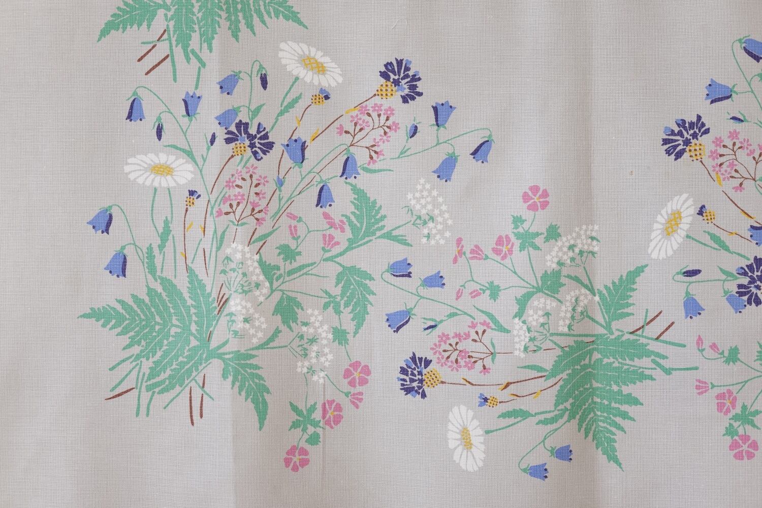 スェーデン製 ハンドプリントのテーブルクロス 北欧らしい花々のリース柄 Norah デザイン