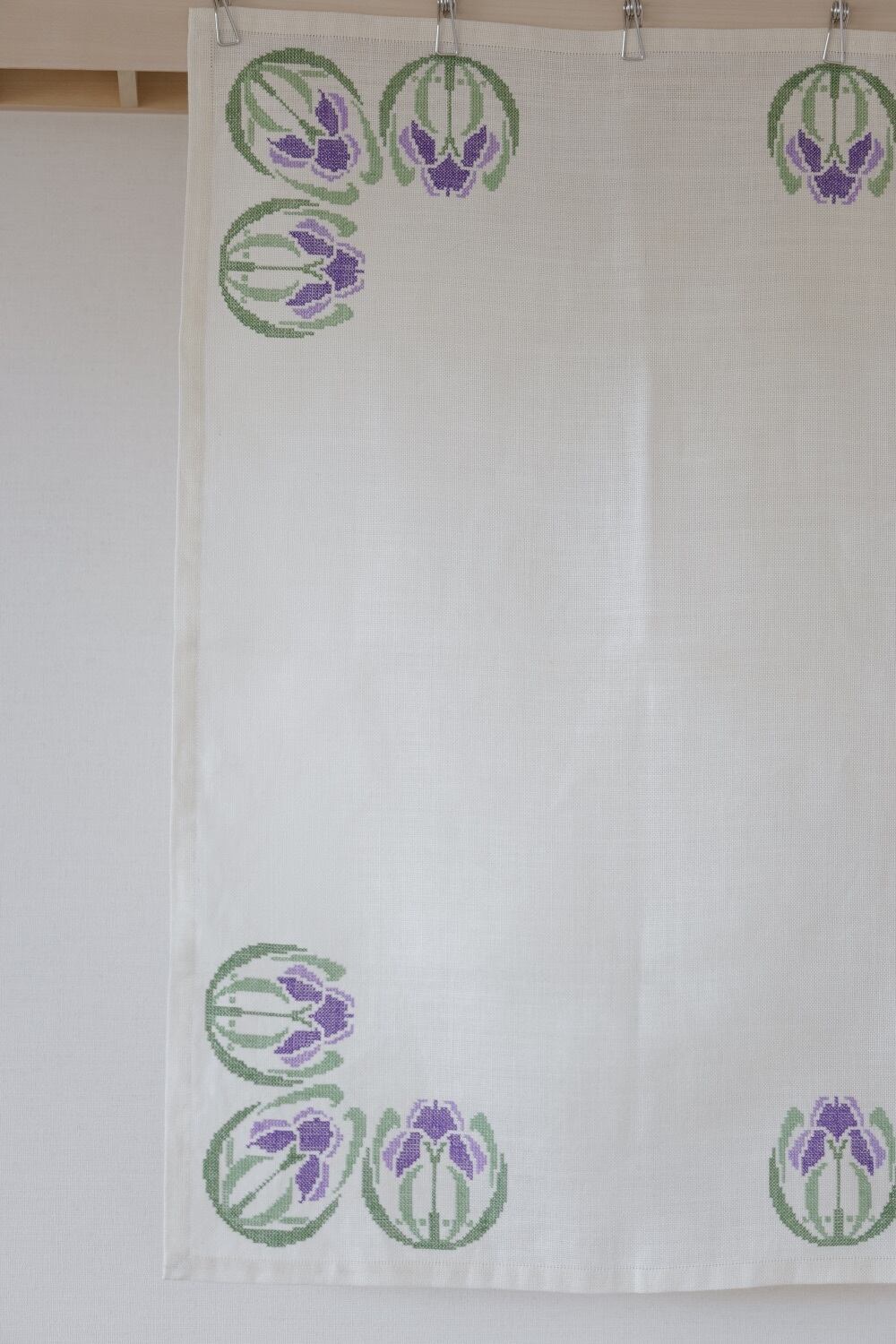 スェーデン製 あやめ柄 手刺繍クロスステッチ おそらく麻布に丁寧な刺繍がされています。