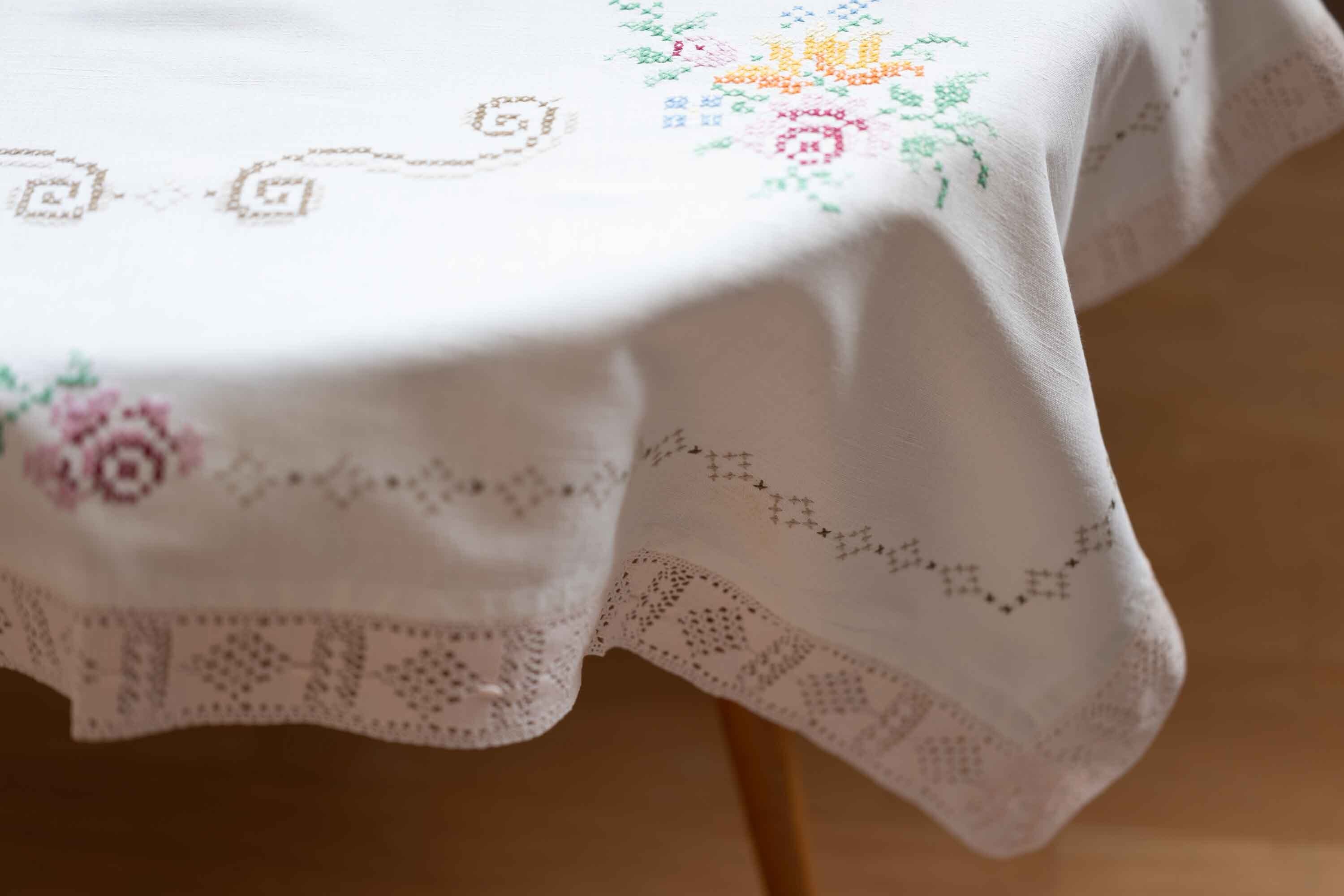 このテーブルクロスの1番の魅力は手編みのレースです。
