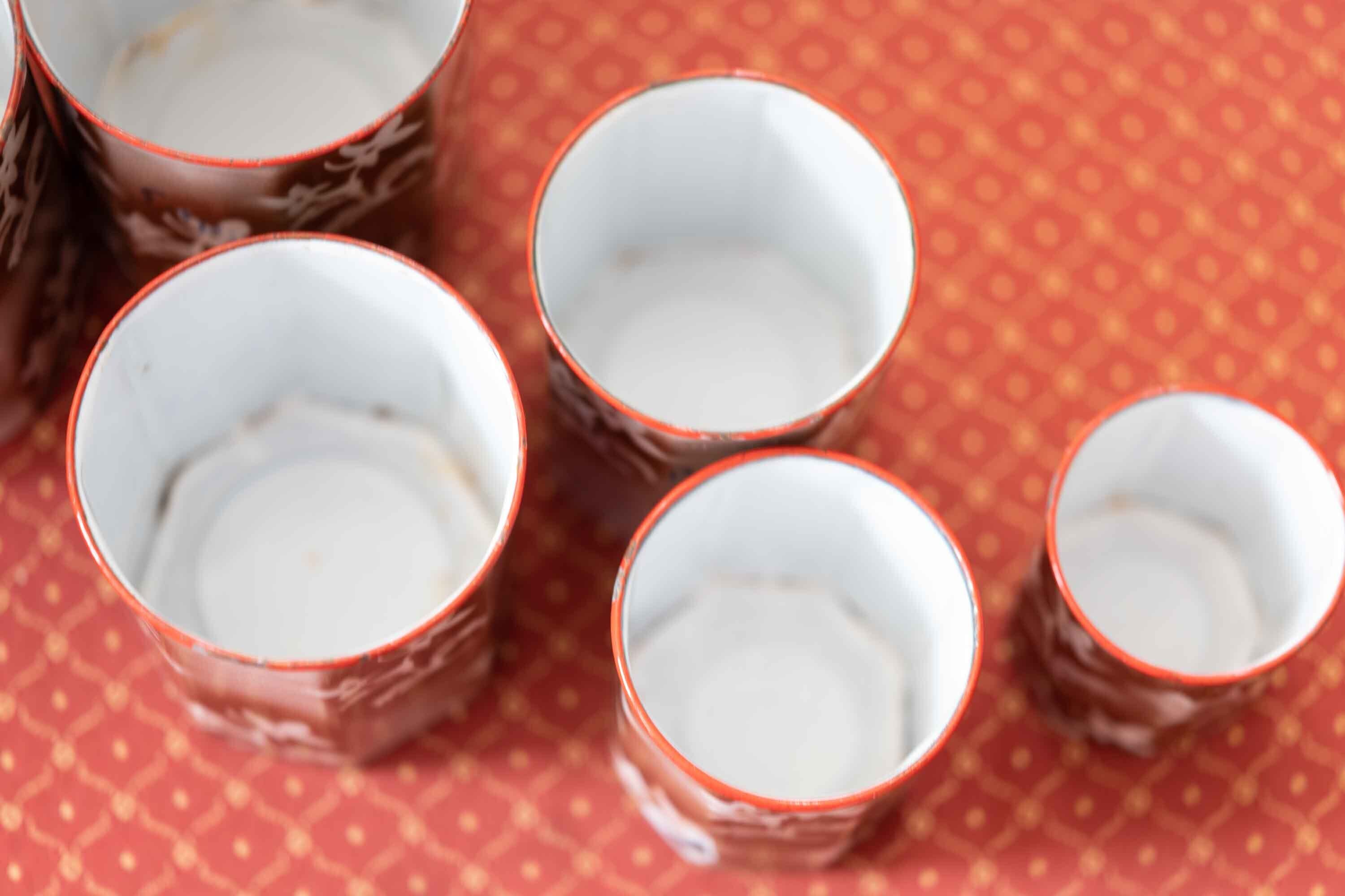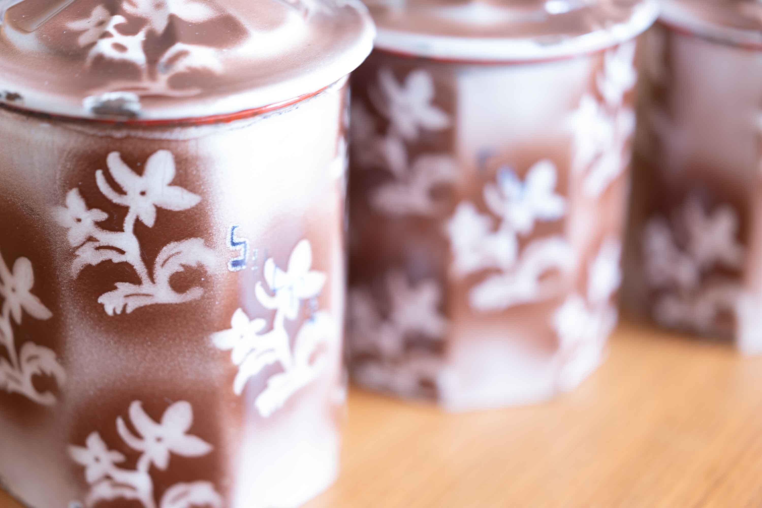 メーカーは不明です。八角形のキャニスターにお花がスプレーされています。6ヶセット