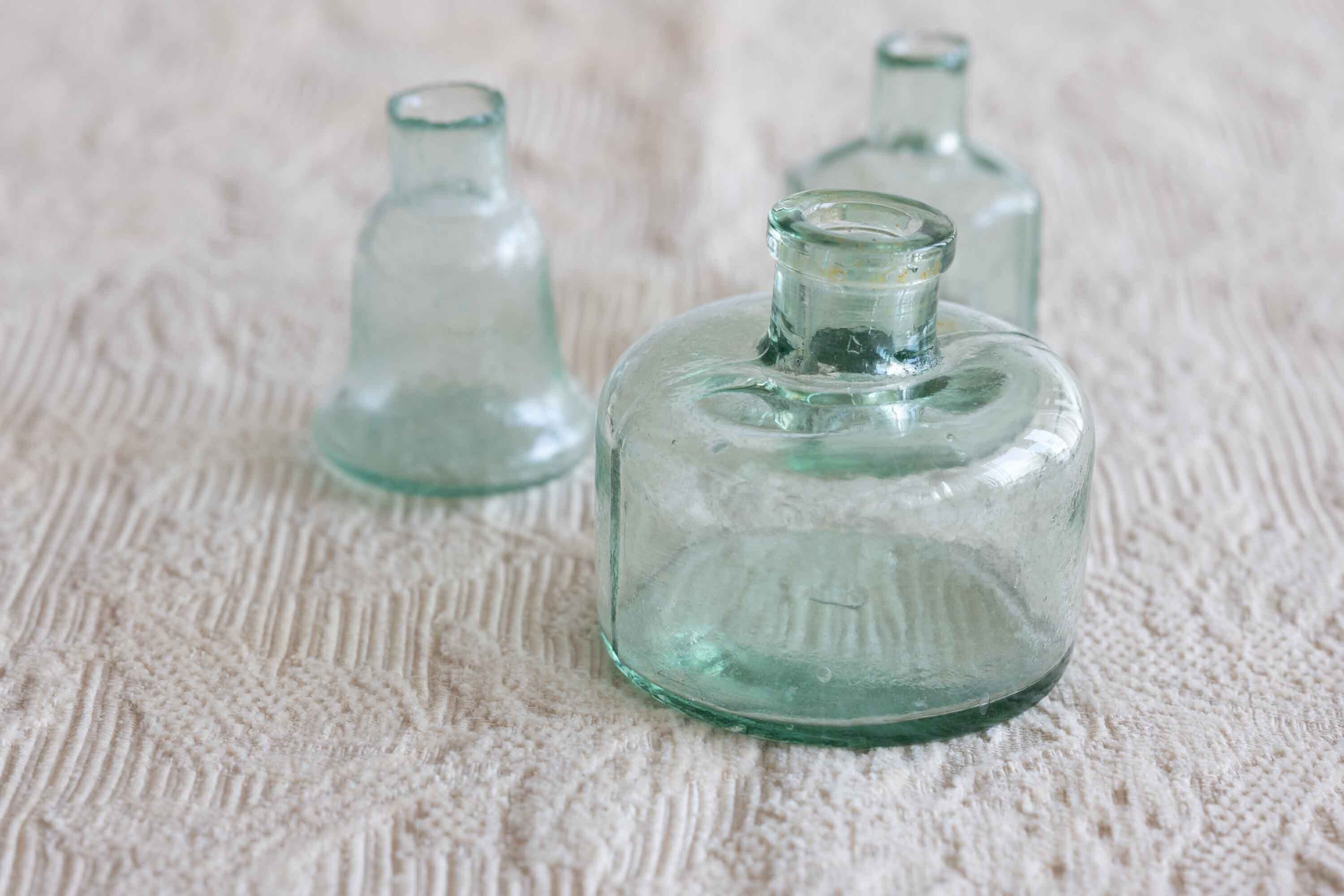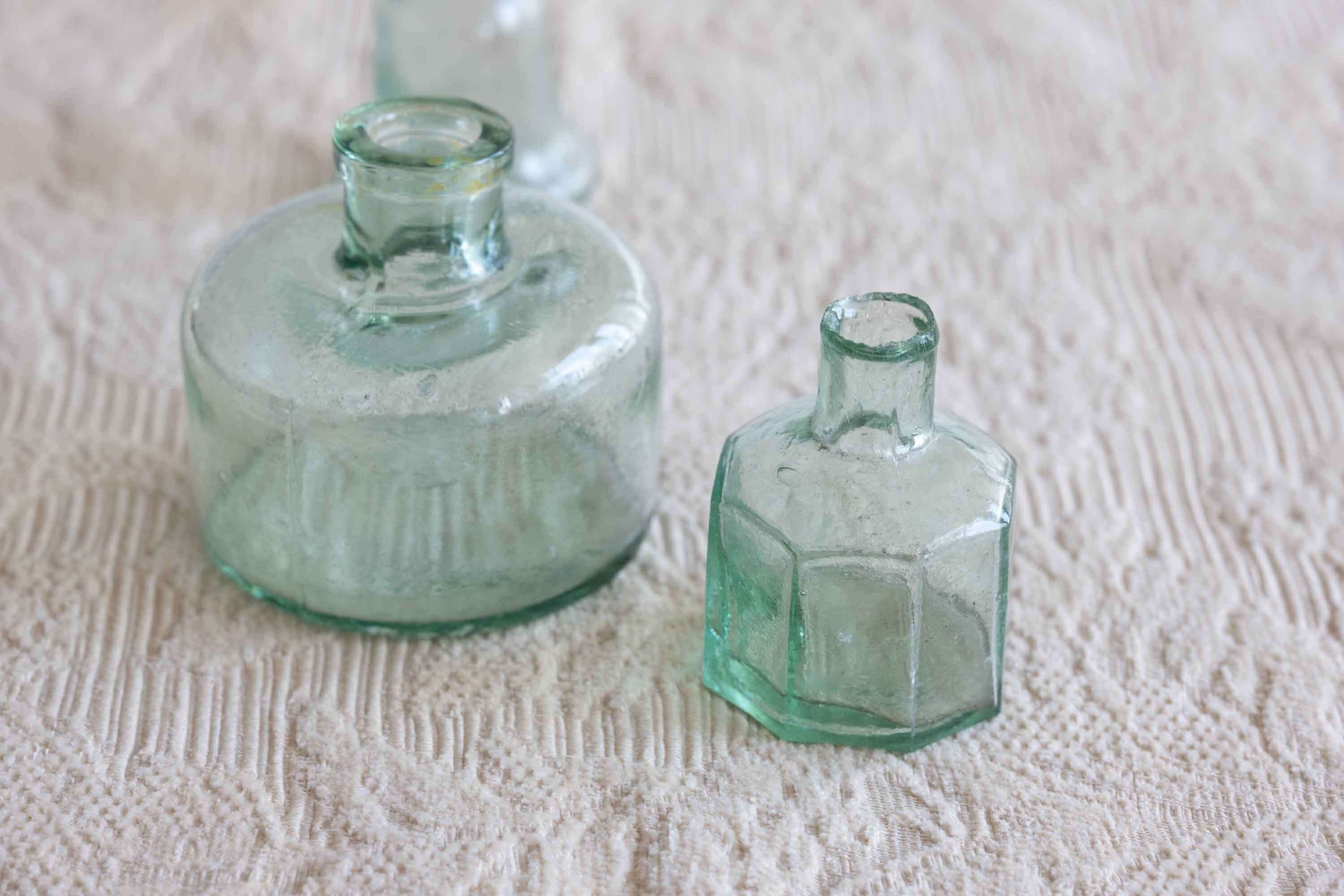 英国製の薬瓶 グリーンの色味が清々しい印象です。3点セットで