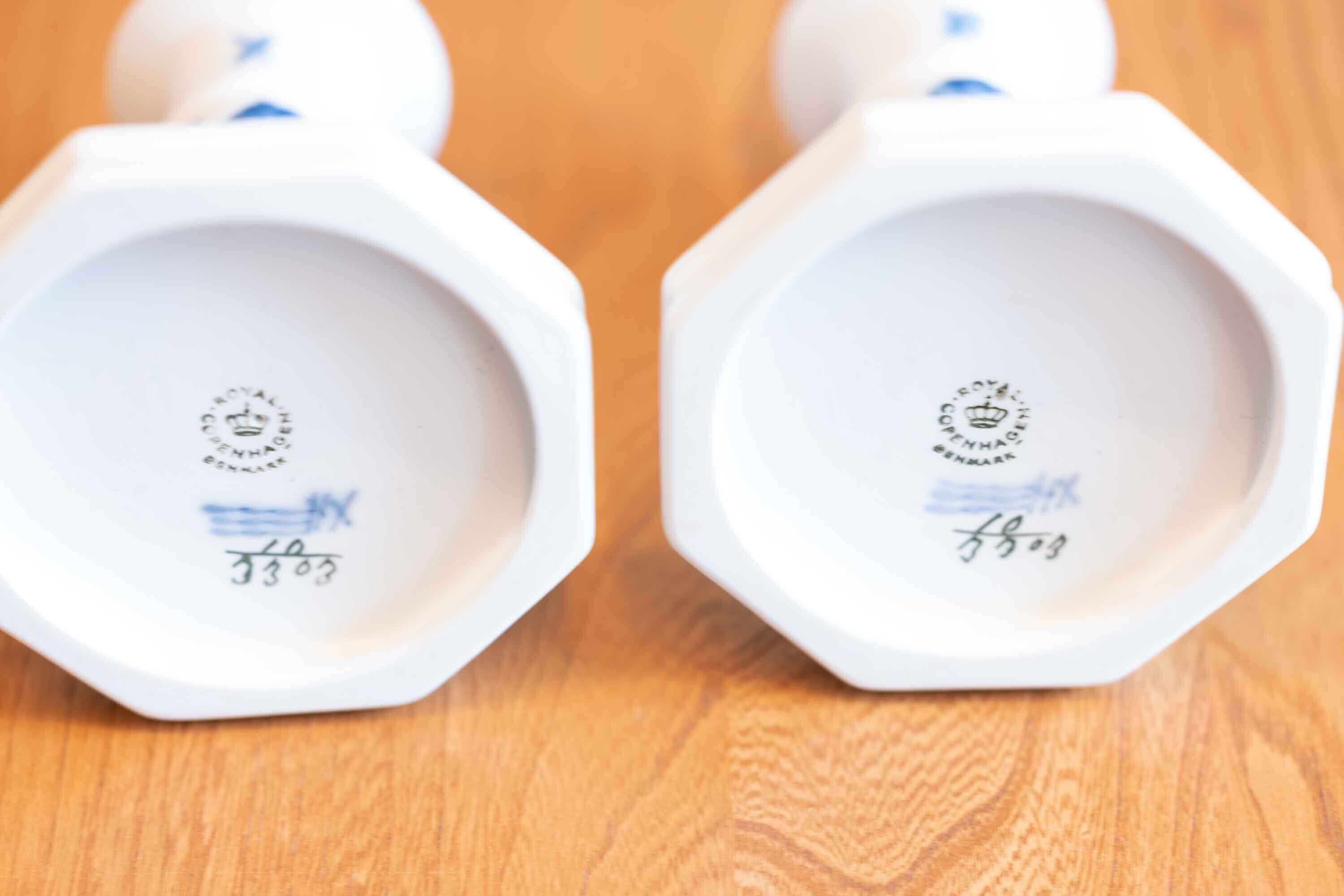 デンマーク ロイヤルコペンハーゲン製 キャンドルホルダー2本セット ブルーフラワー手書き