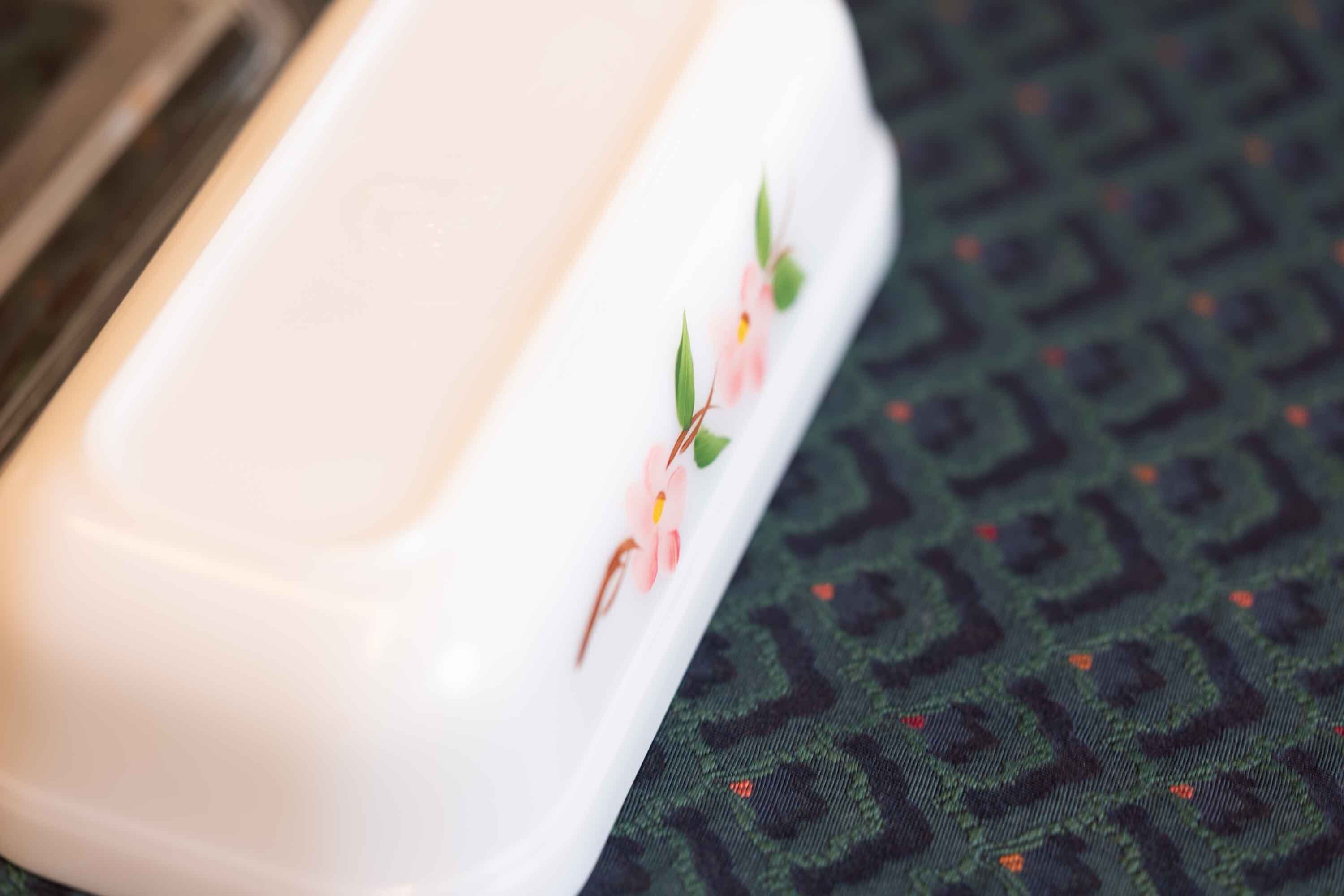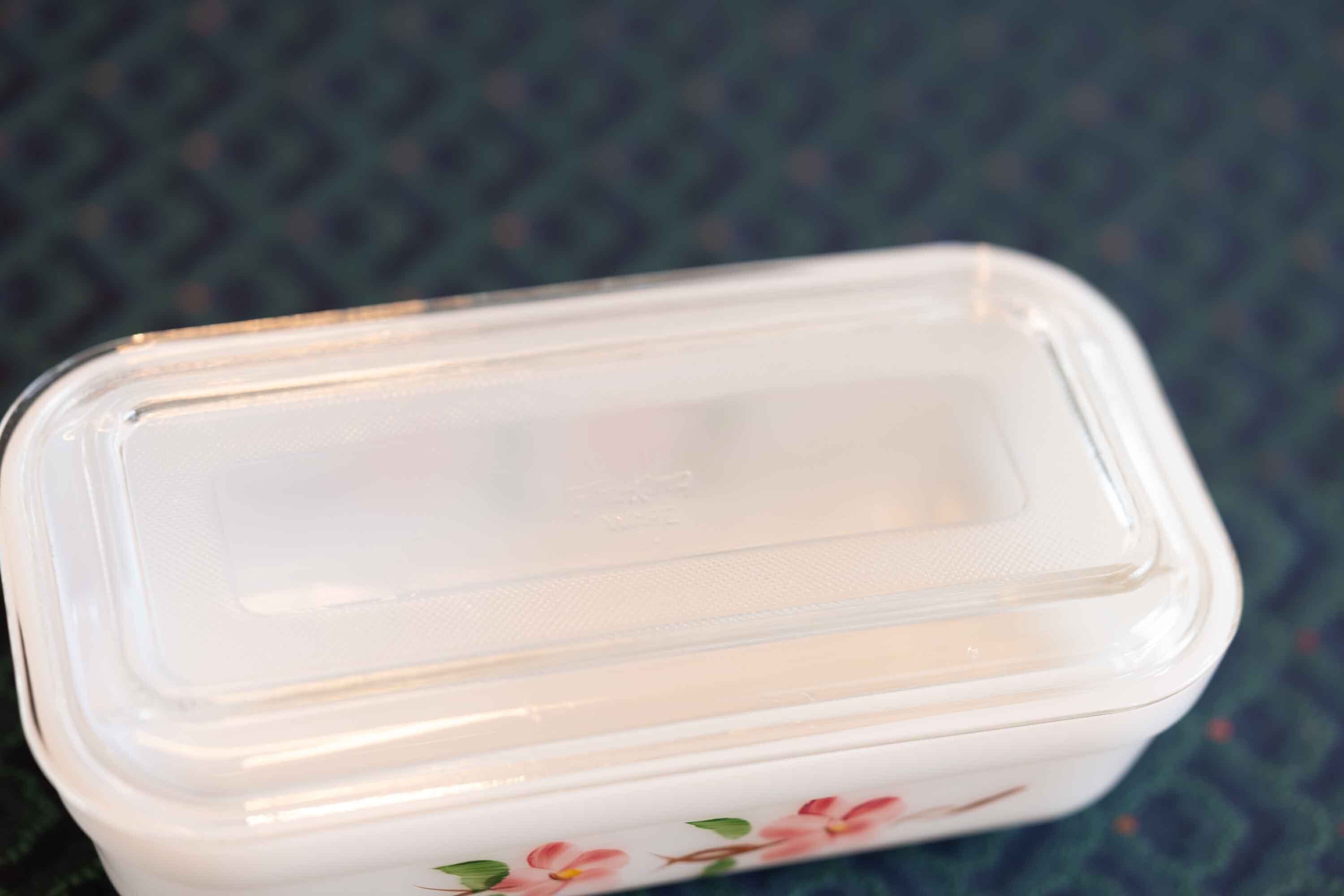 Fire King (ファイヤーキング) キャセロール ガラスのふた付き ピーチブロッサム シリーズ 1960年代中期~1976年代