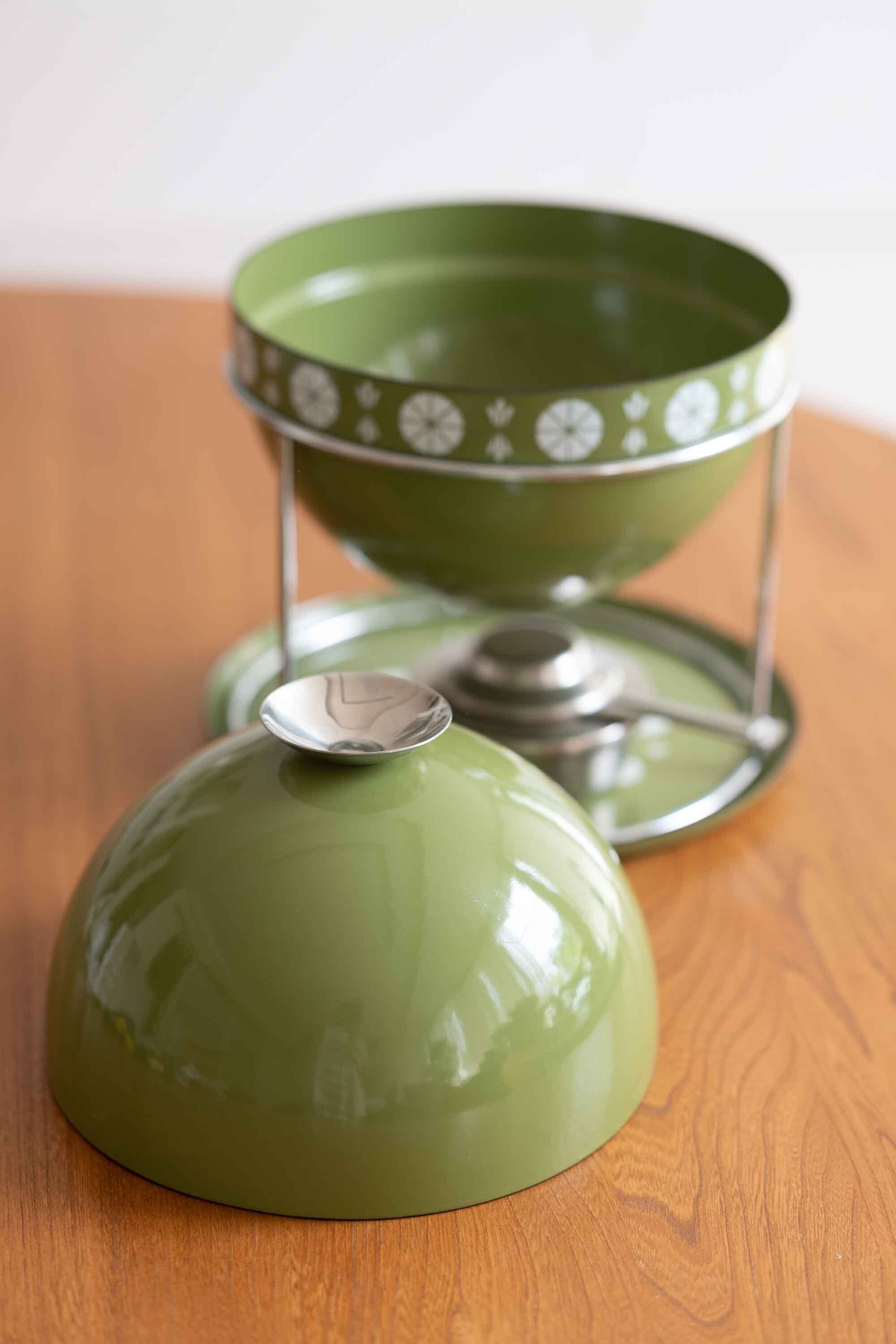 フォンデュ鍋は見かけますが、こちらは珍しいまん丸のボウル型になるタイプです。