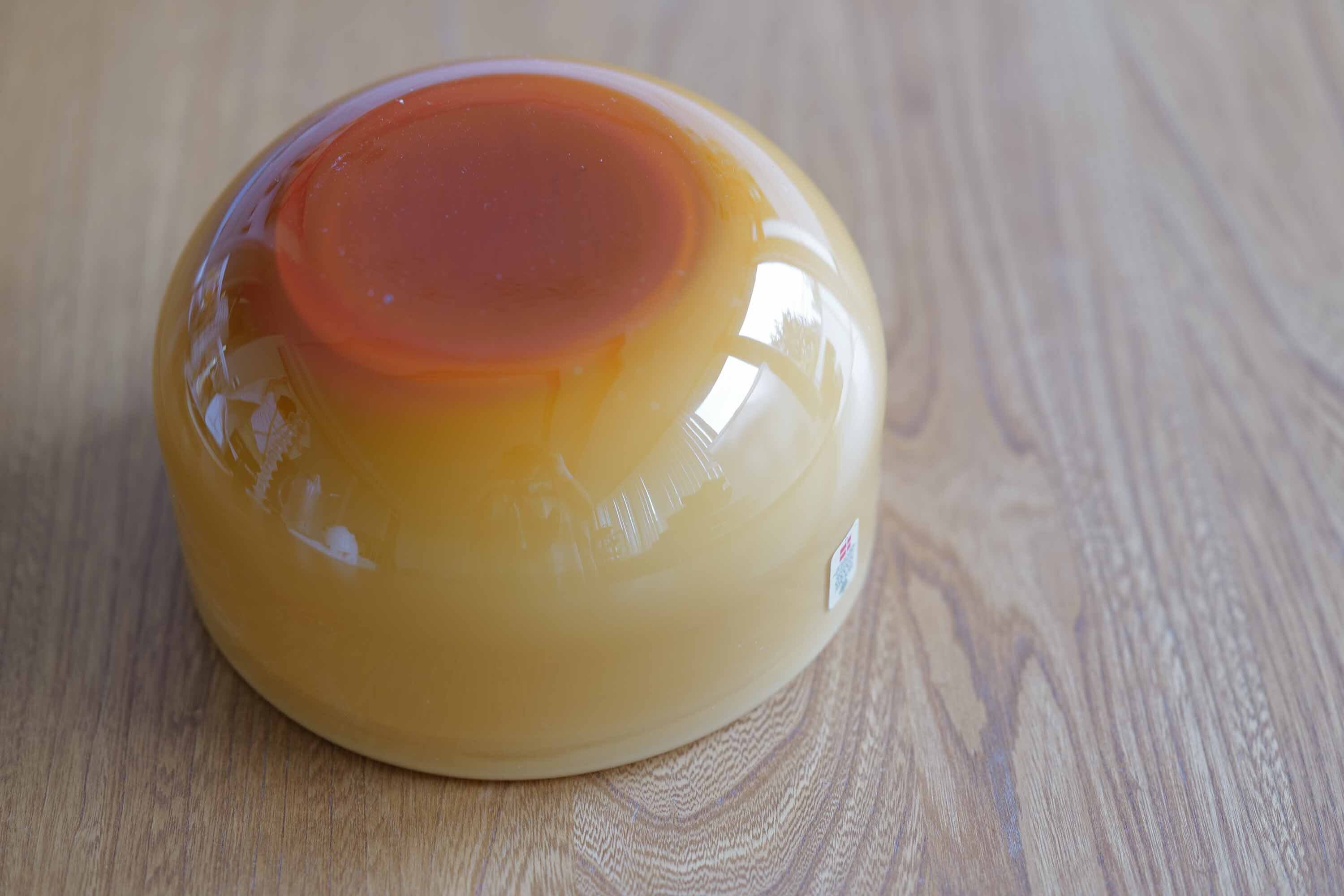 下部に向かってオレンジ色が濃くなっていき、底部は飴色に変化しています。