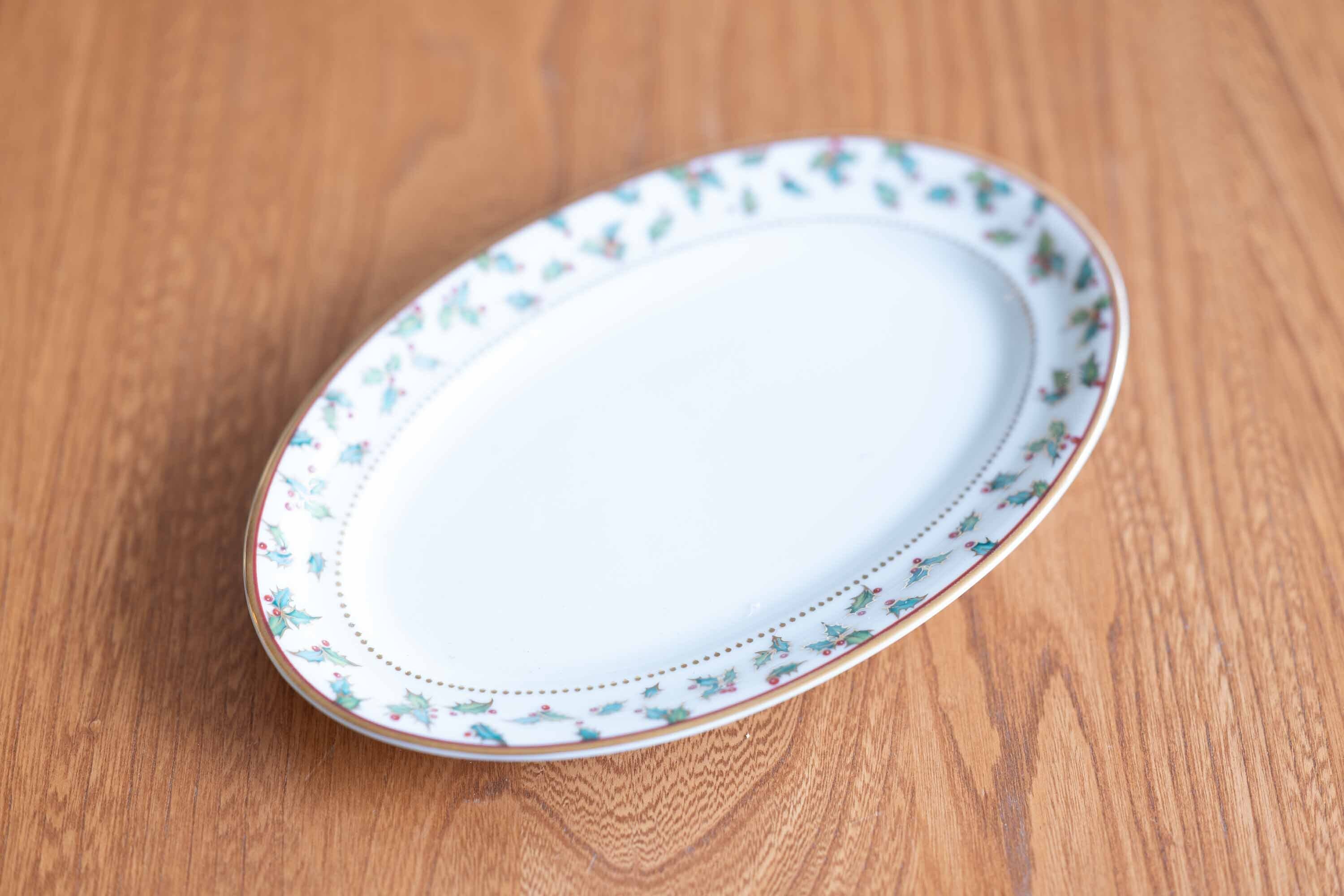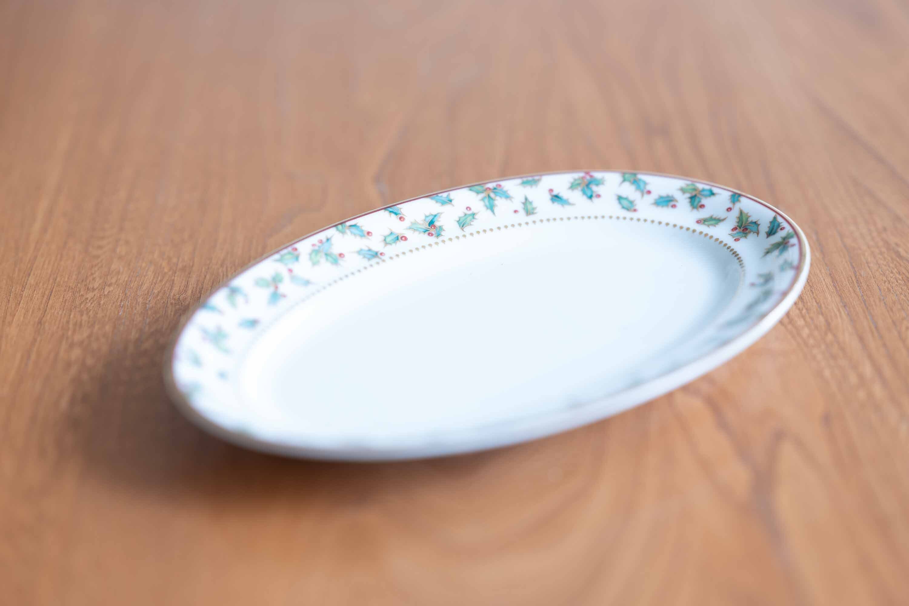 ロイヤルコペンハーゲンのクリスマスプレートは、美しいデザインと緻密な金彩が施されたオーバル小皿です。ユニークでシンボリックな柊の赤い実と緑の葉っぱ柄は、クリスマスの季節にぴったりのアイテムです。