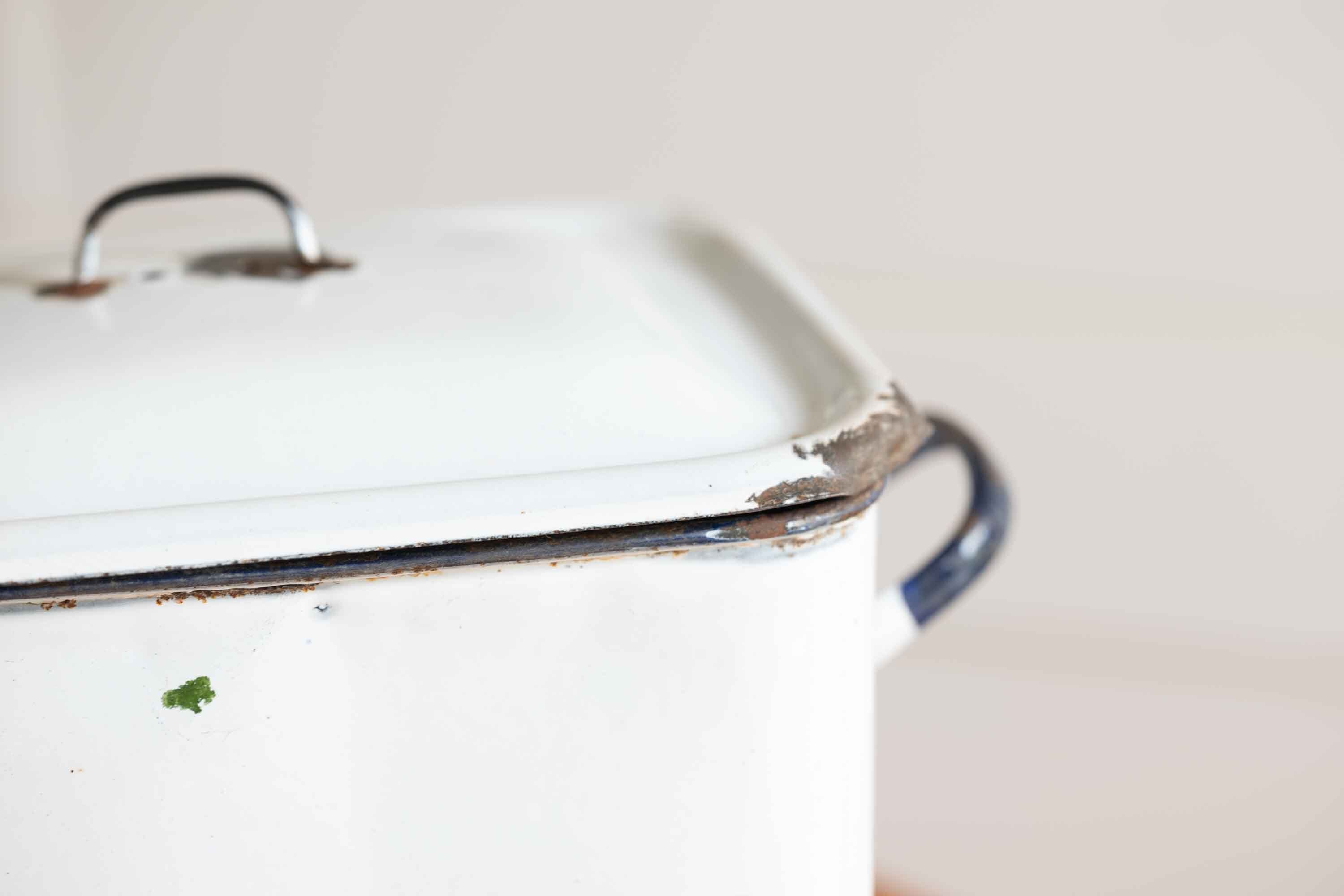 フタは歪みがあり、取手部分も破損がありますが、作られた歴史を考えるとアンティークの逸品と思います。