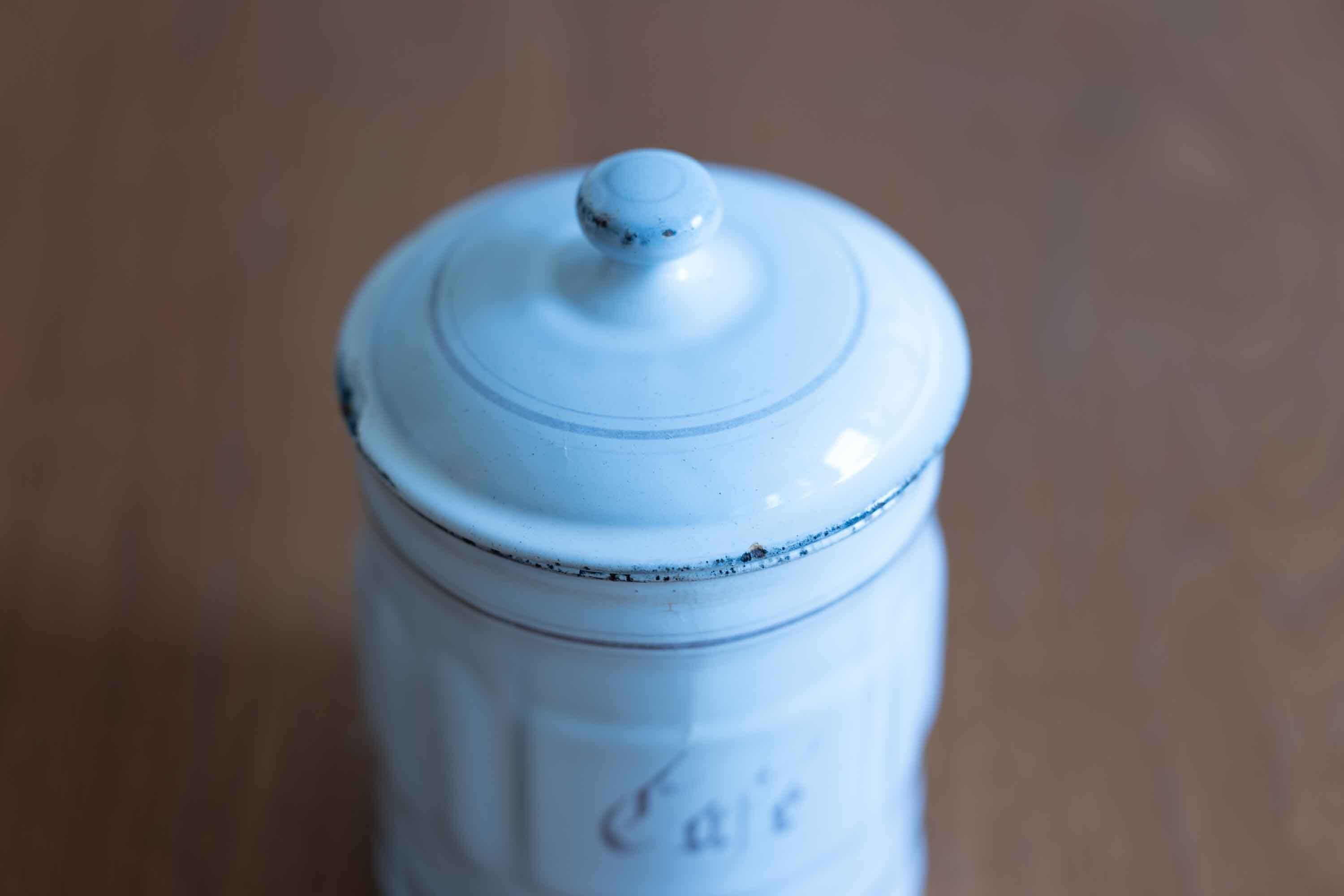 フランス製 とても古いタイプのホーローキャニスターです。