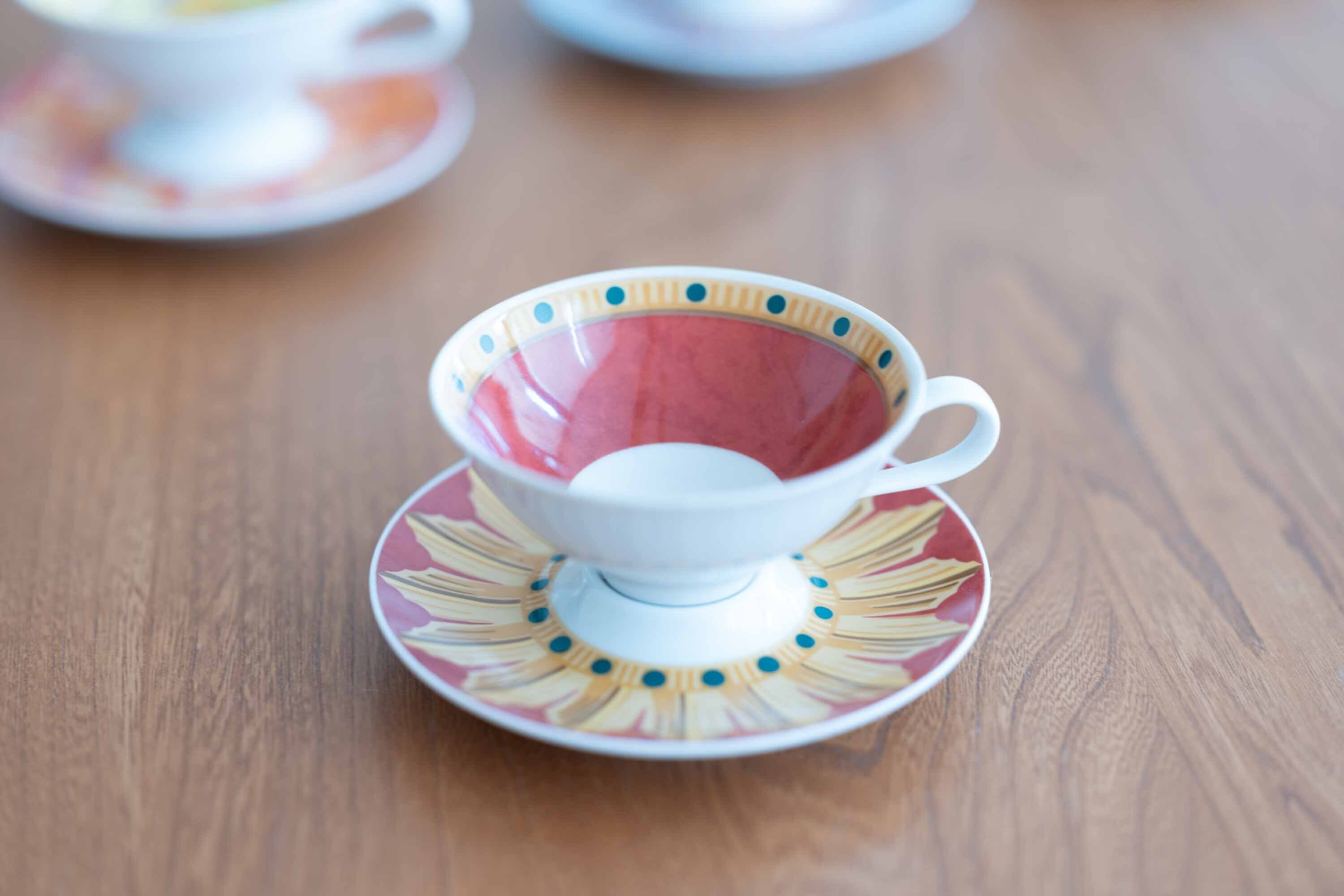 ドイツ Rosenthal (ローゼンタール)製ではありますが、イタリア語のオーソーレミオ(私の太陽)と名付けられたシリーズです。4色あ離、こちらは赤に黄色の花がデザインされています。