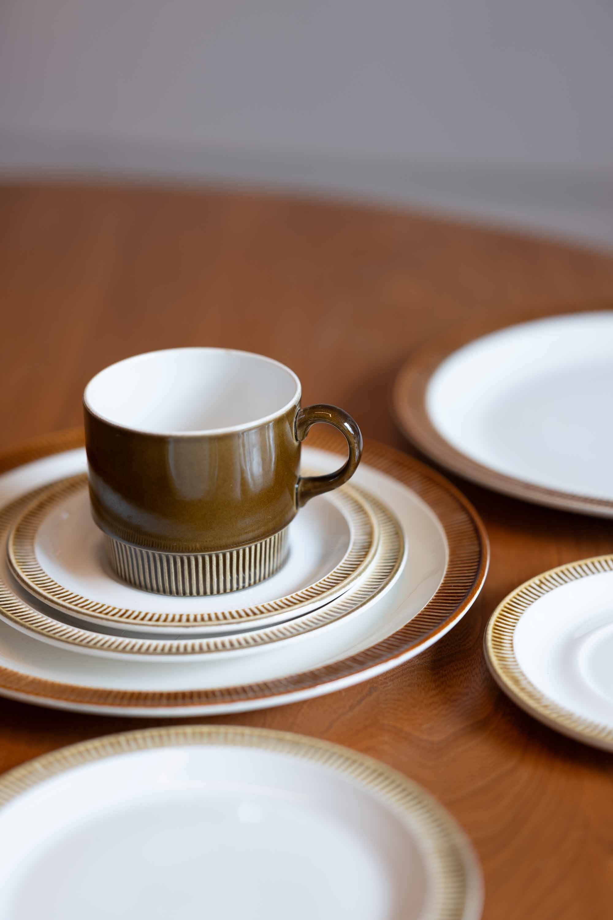 1970年代の英国製の陶磁器、poole ポタリーのカップやプレートです。