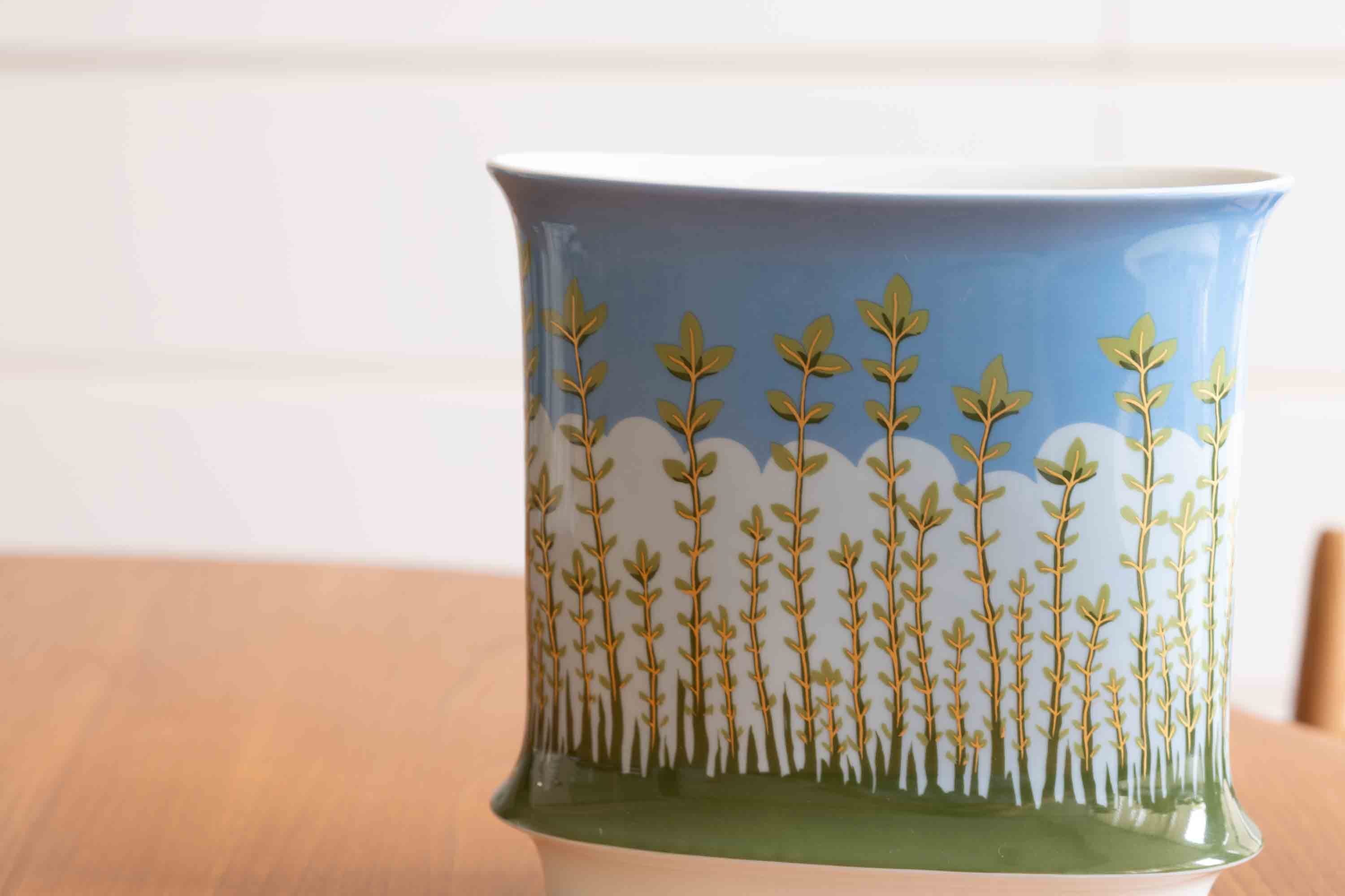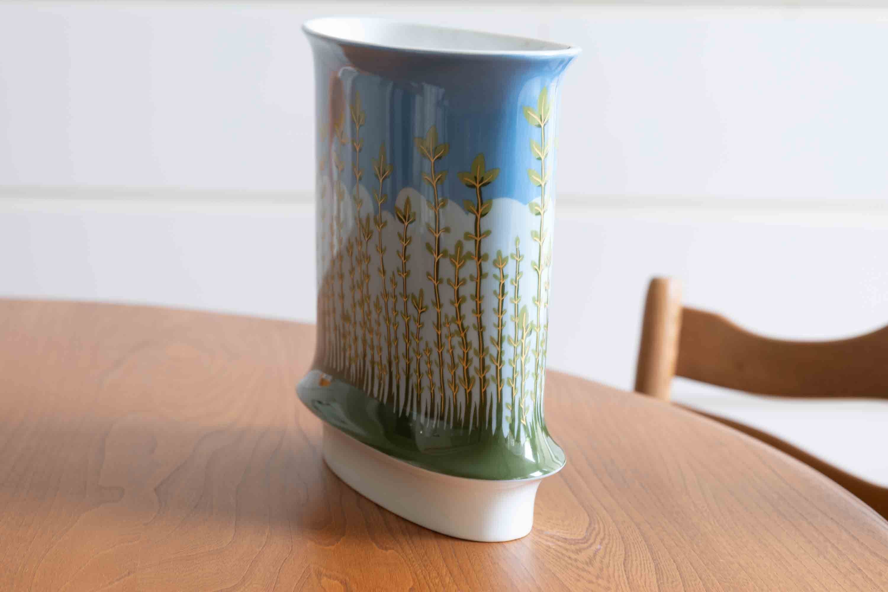 花瓶ですが、お花がなくても明るい空と植物で単独で飾って楽しんでいただけます。