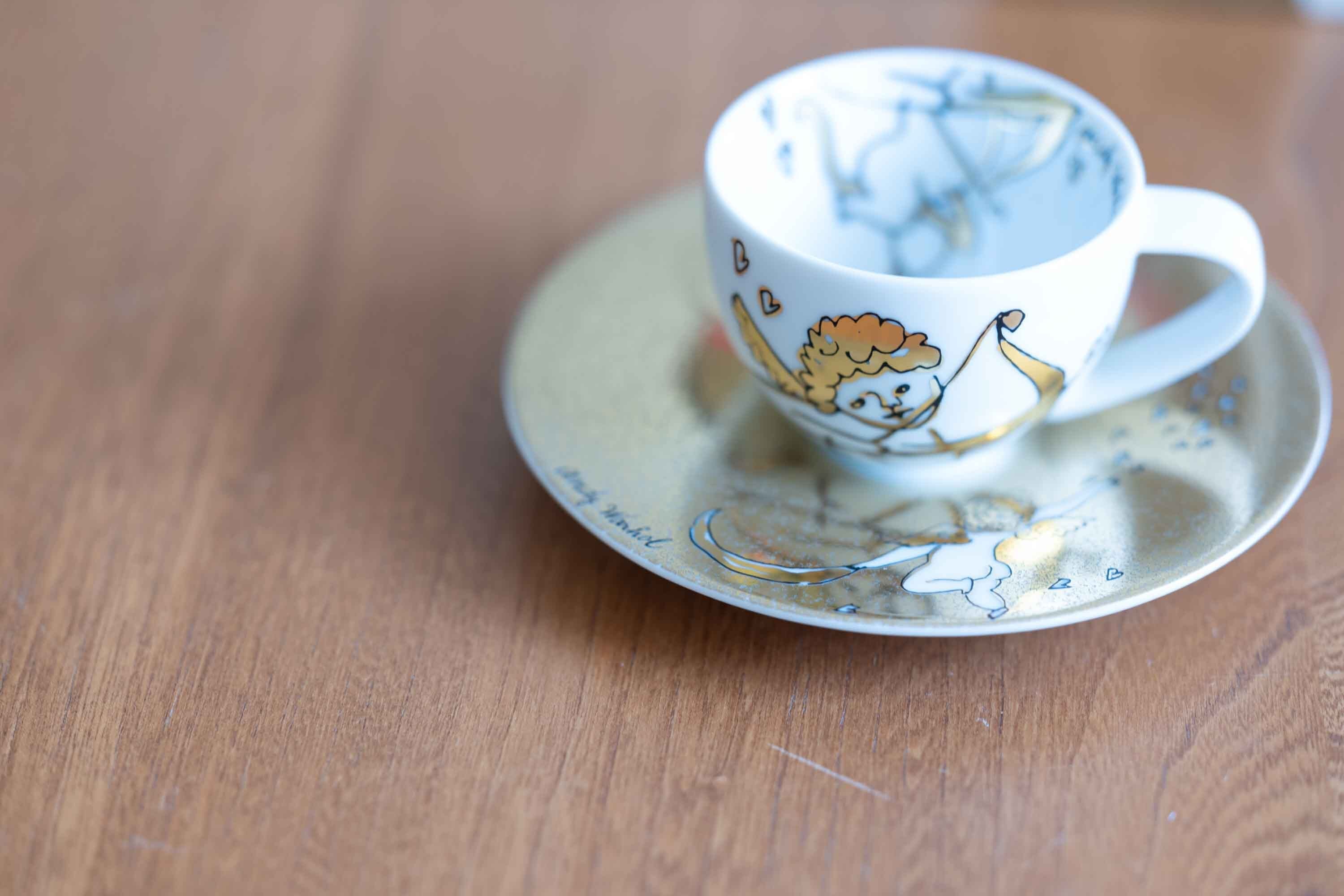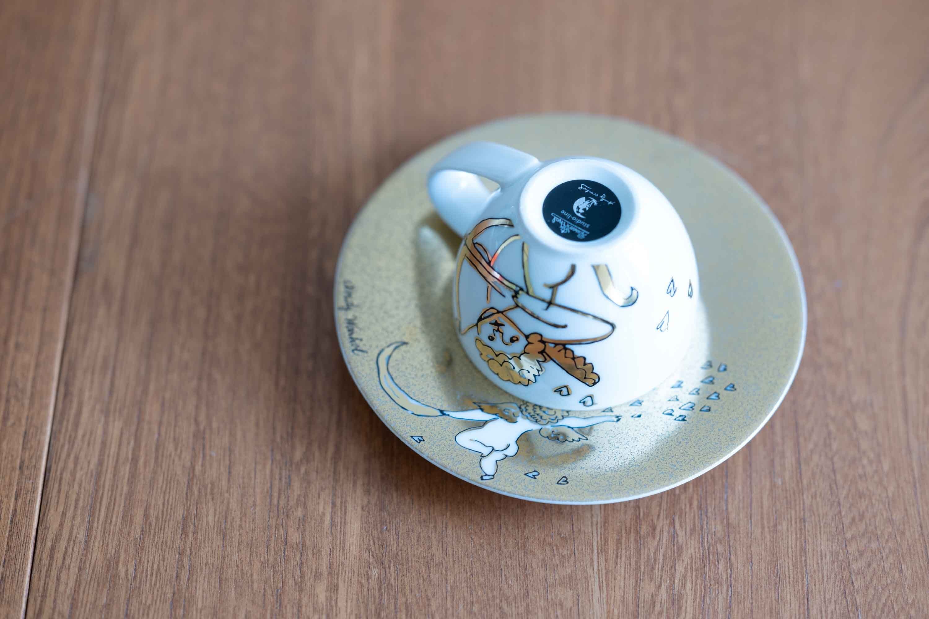 当時は新進気鋭の若手アーティストだったアンディー・ウォーホルを抜擢して、彼の初期の愛らしい天使をモチーフにこんな素敵なエスプレッソカップ&ソーサーを製造しました。